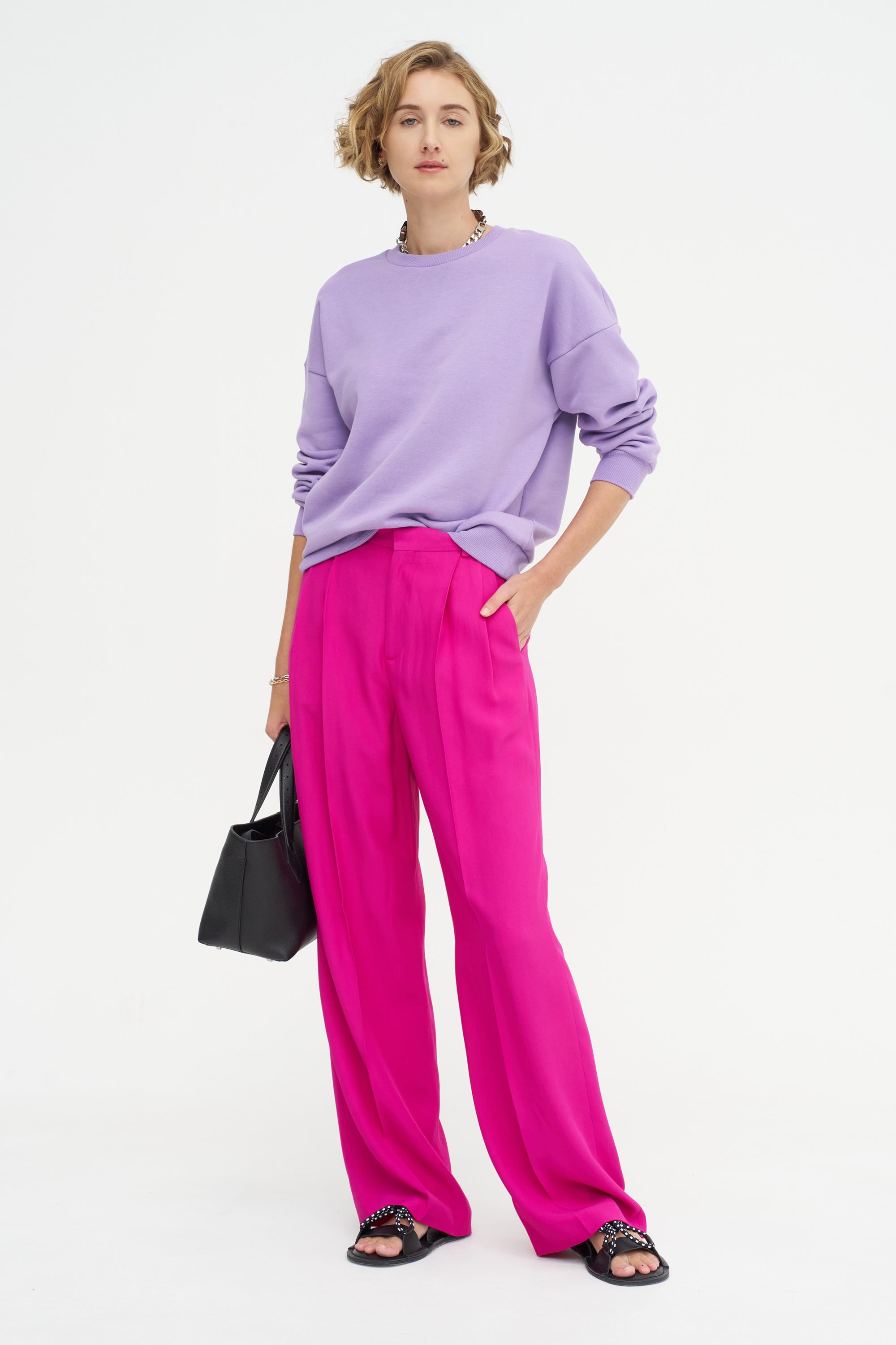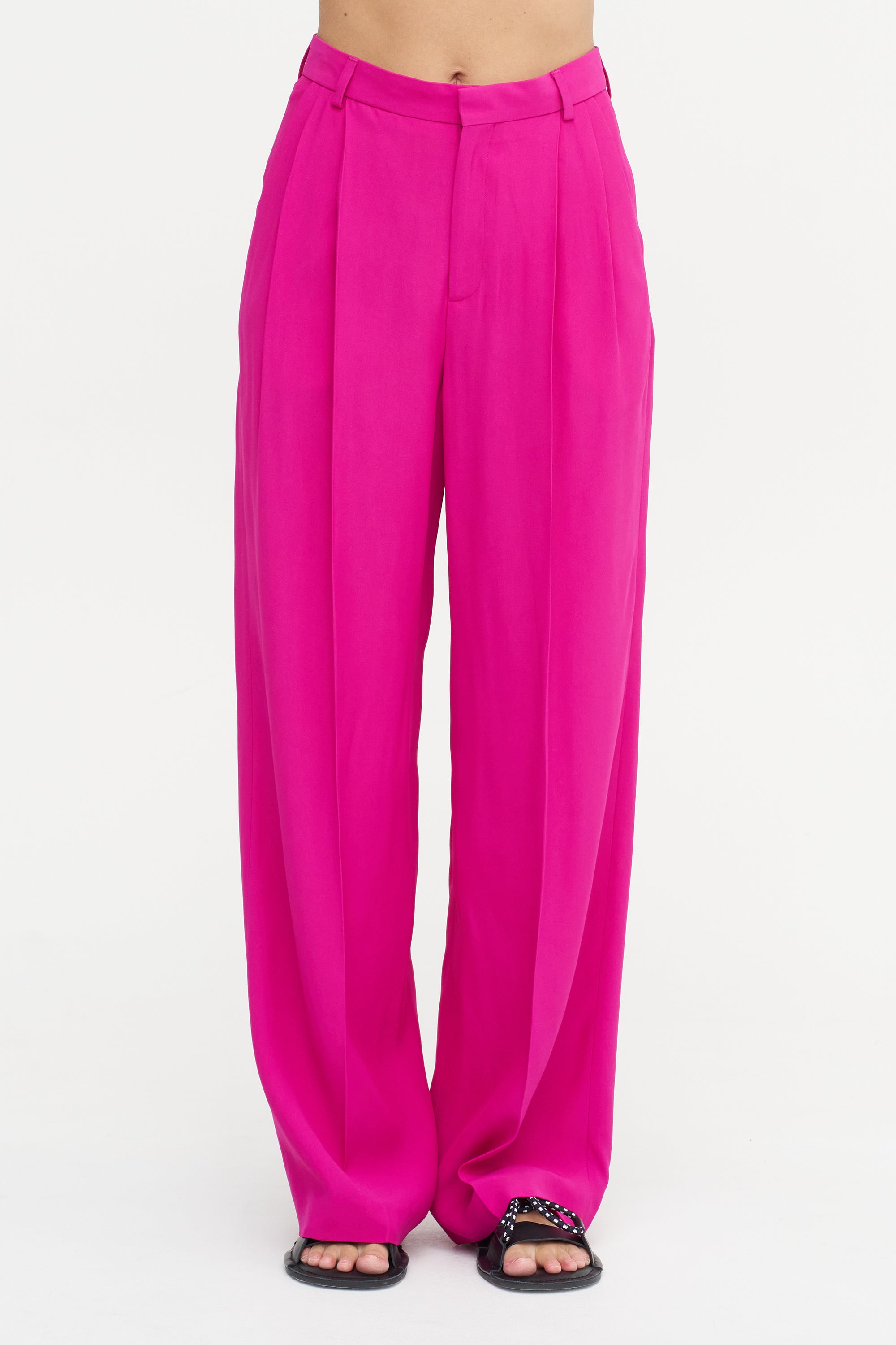 INDRESS Falmouth - Viscose And Acetate Front Pleats Pants, Fuchsia