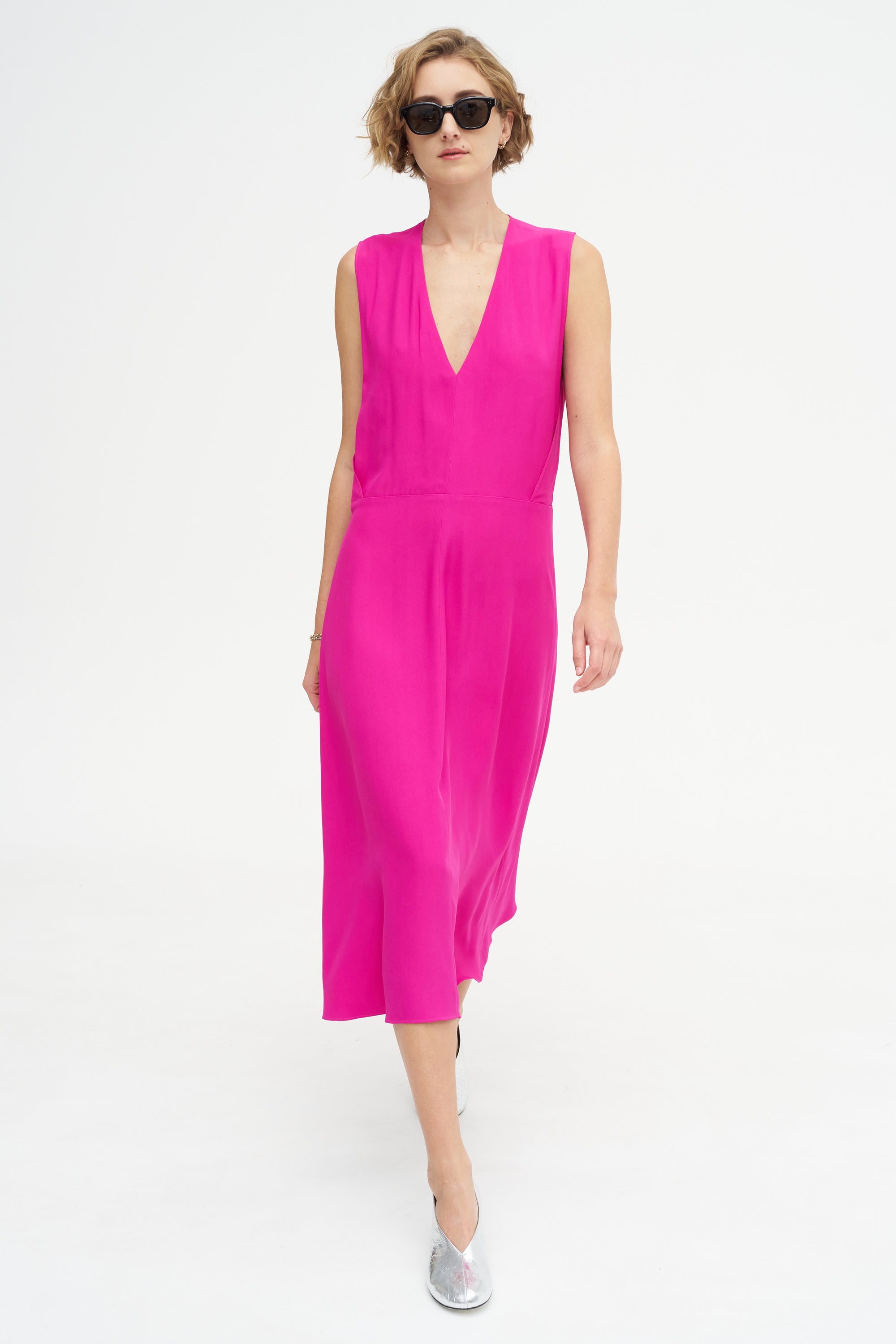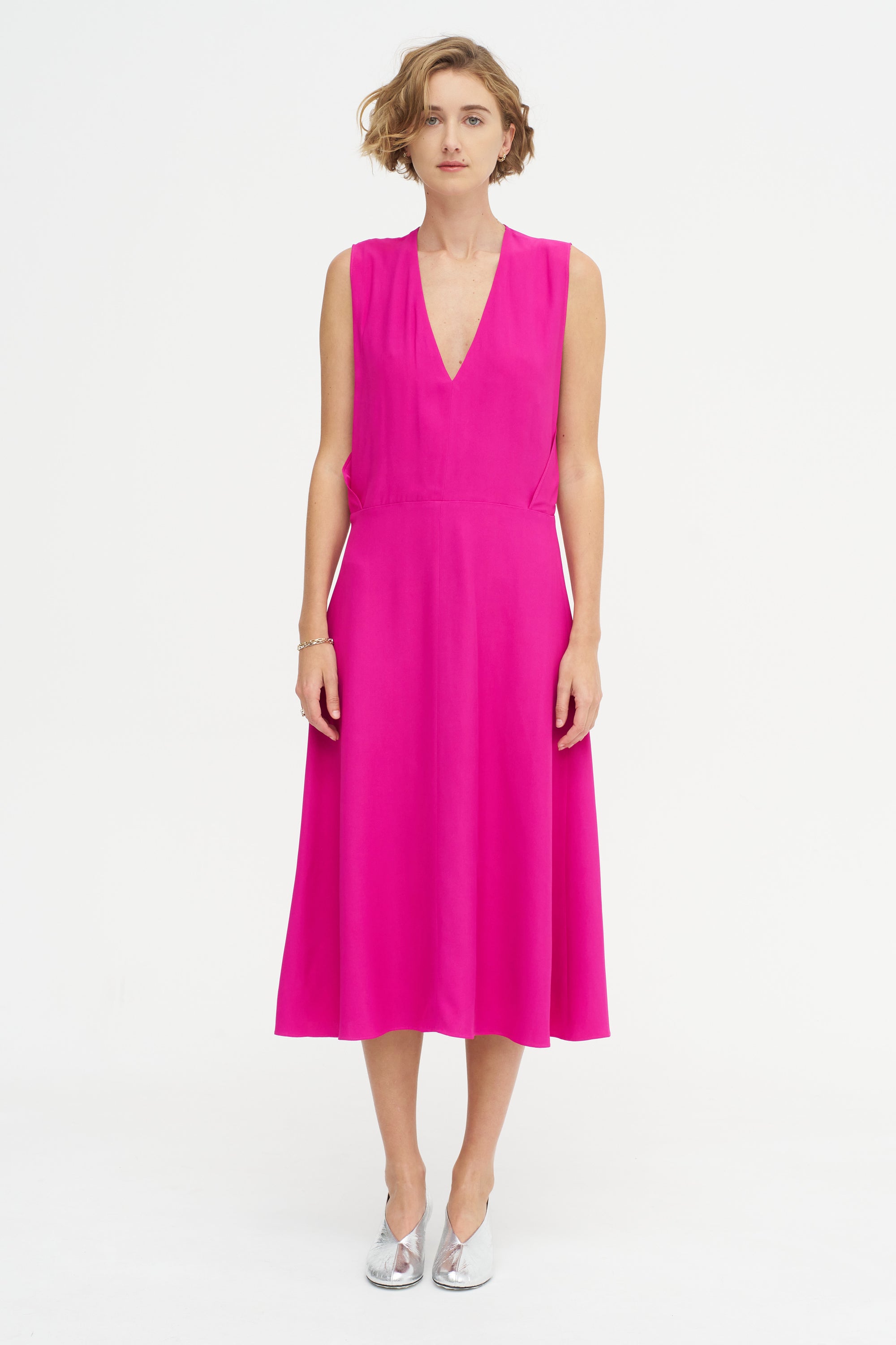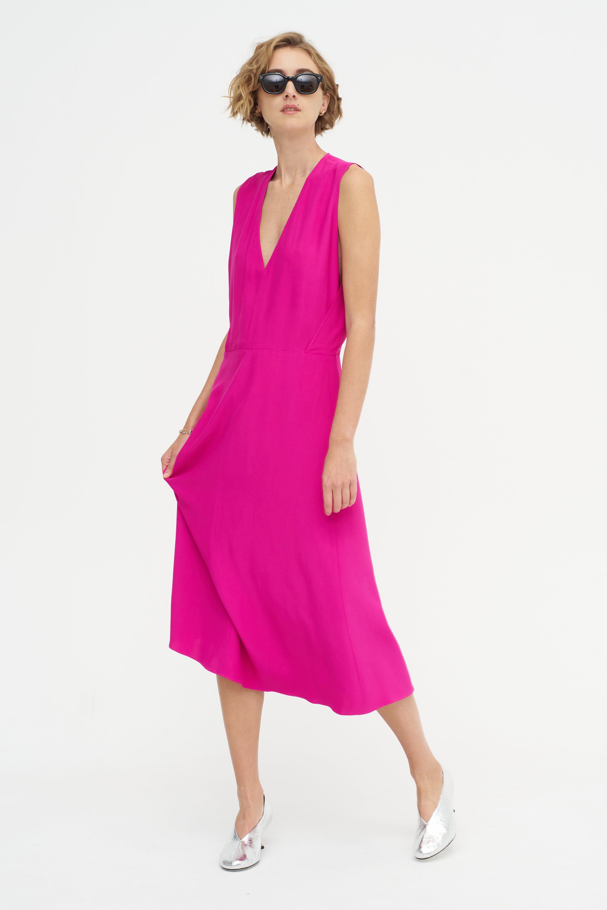 INDRESS Salisbury - V-neck Viscose And Acetate Dress, Fuchsia