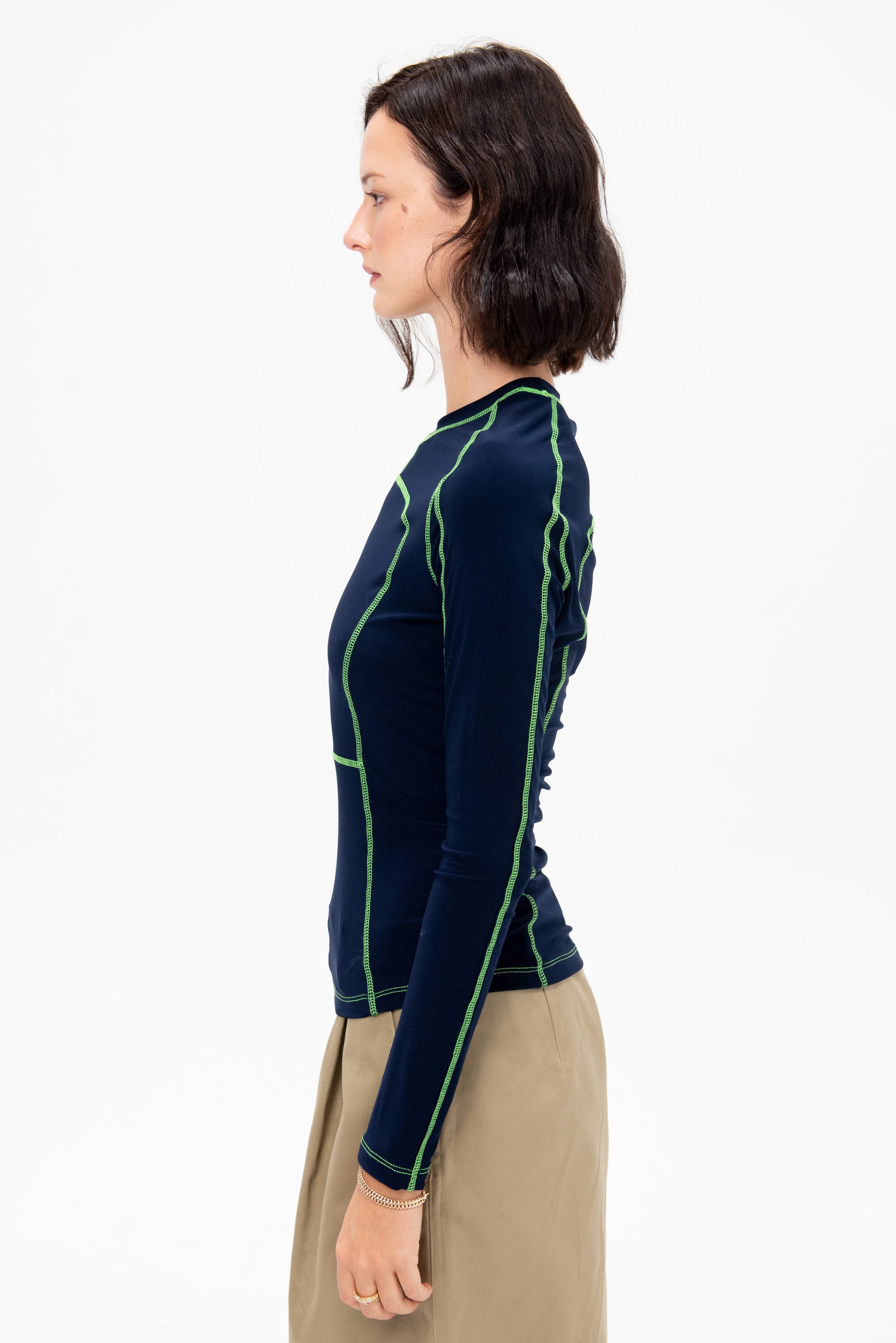 Long Sleeve Paneled Scuba Top, Ink & Grass