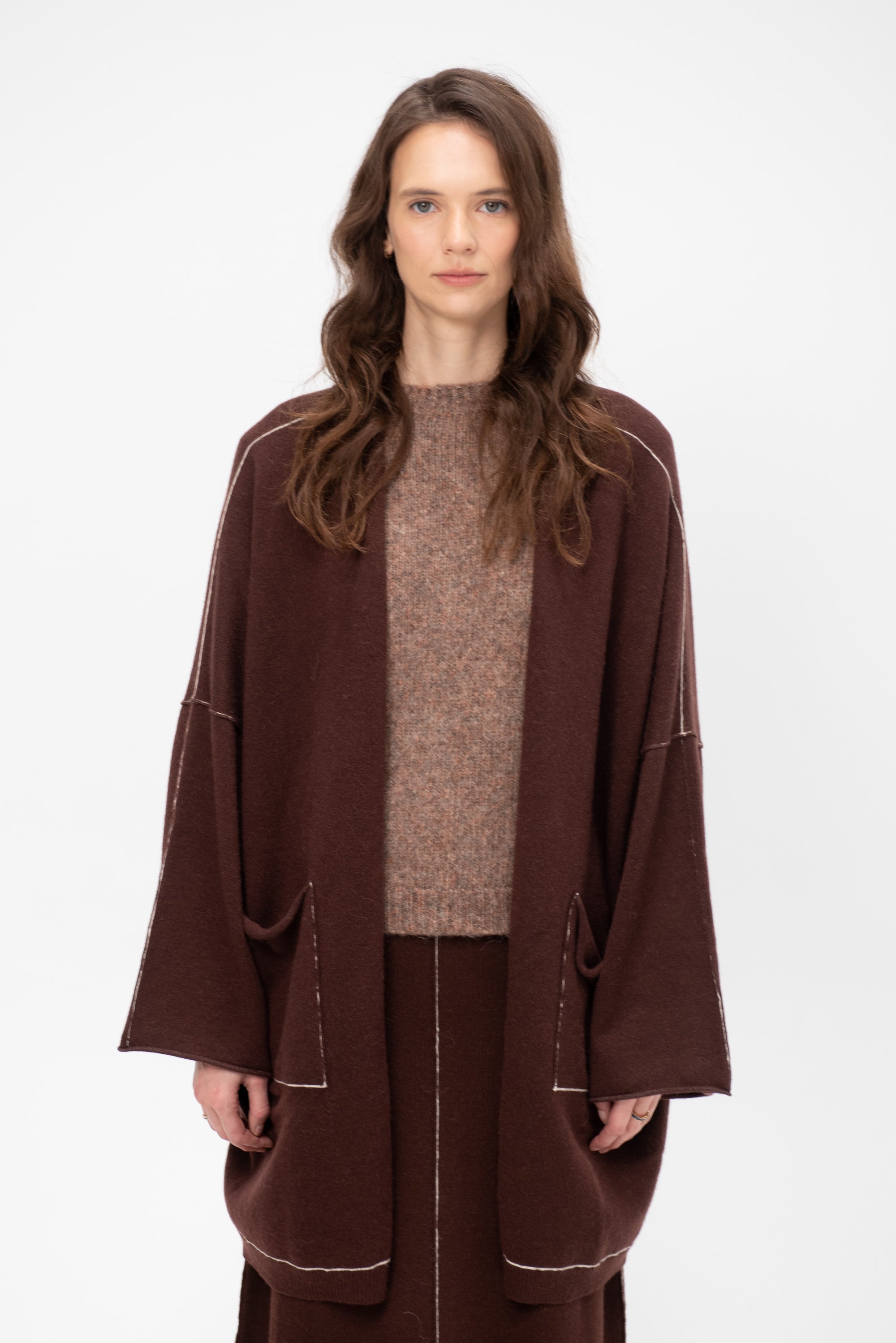 Stitch Wide Cardigan, Merlot