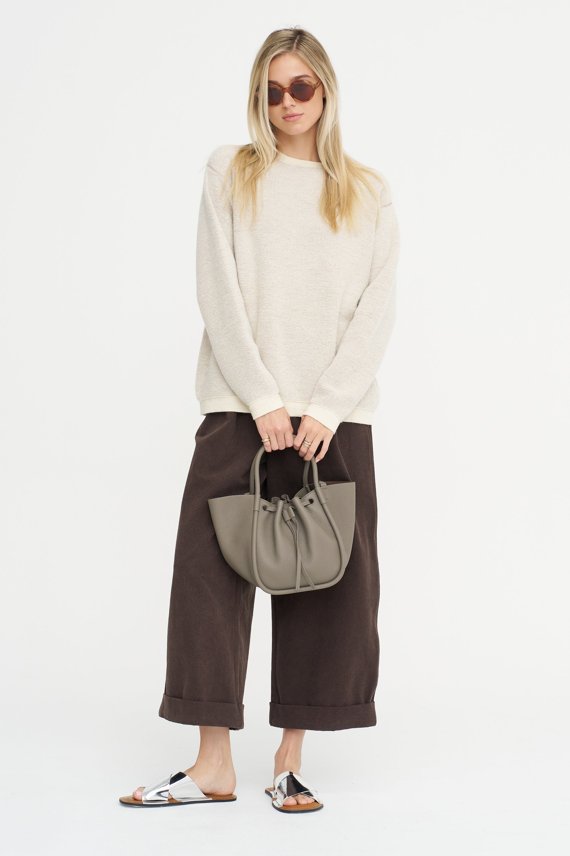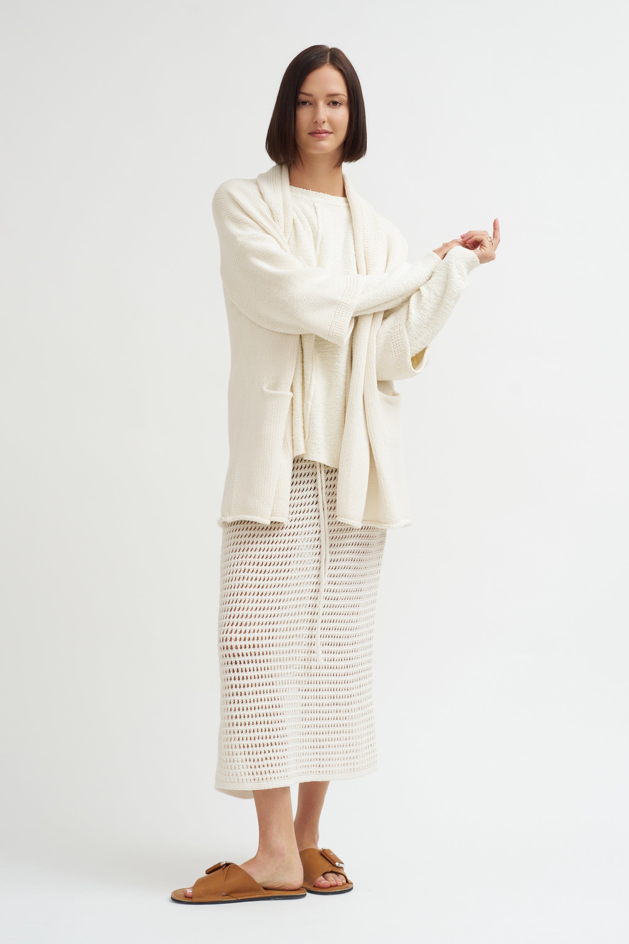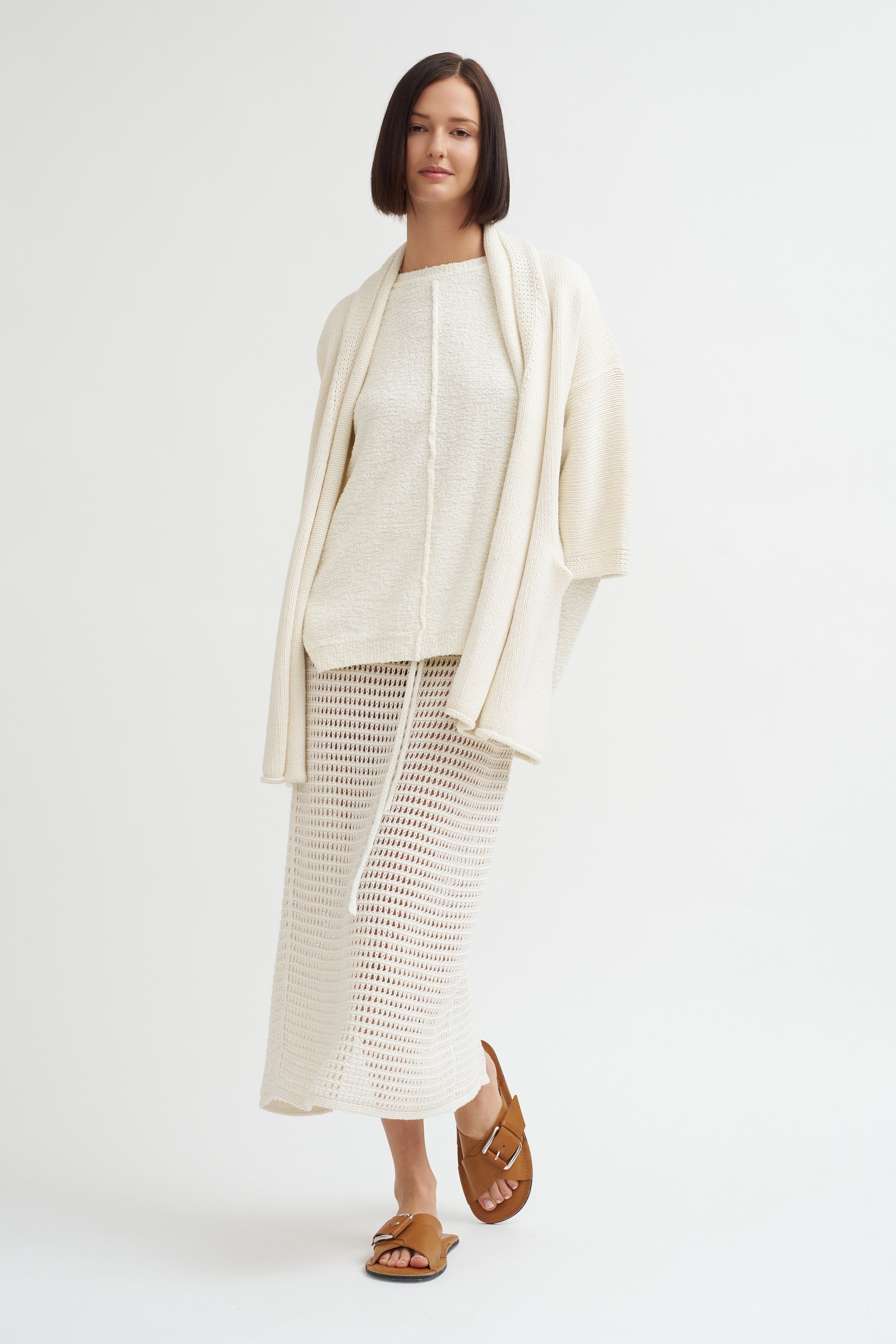 Knitwear designer Lauren Manoogian launched her eponymous label in 2008 as a series of wearable experiments using repurposed materials and leather. Manoogian employs a hands on process, knitting each idea in her Brooklyn studio the same way an artist would sketch out their initial drawings. She then collaborates with Peruvian knitters who utilize natural materials grown and milled in Peru to help turn her ideas into fashion.
