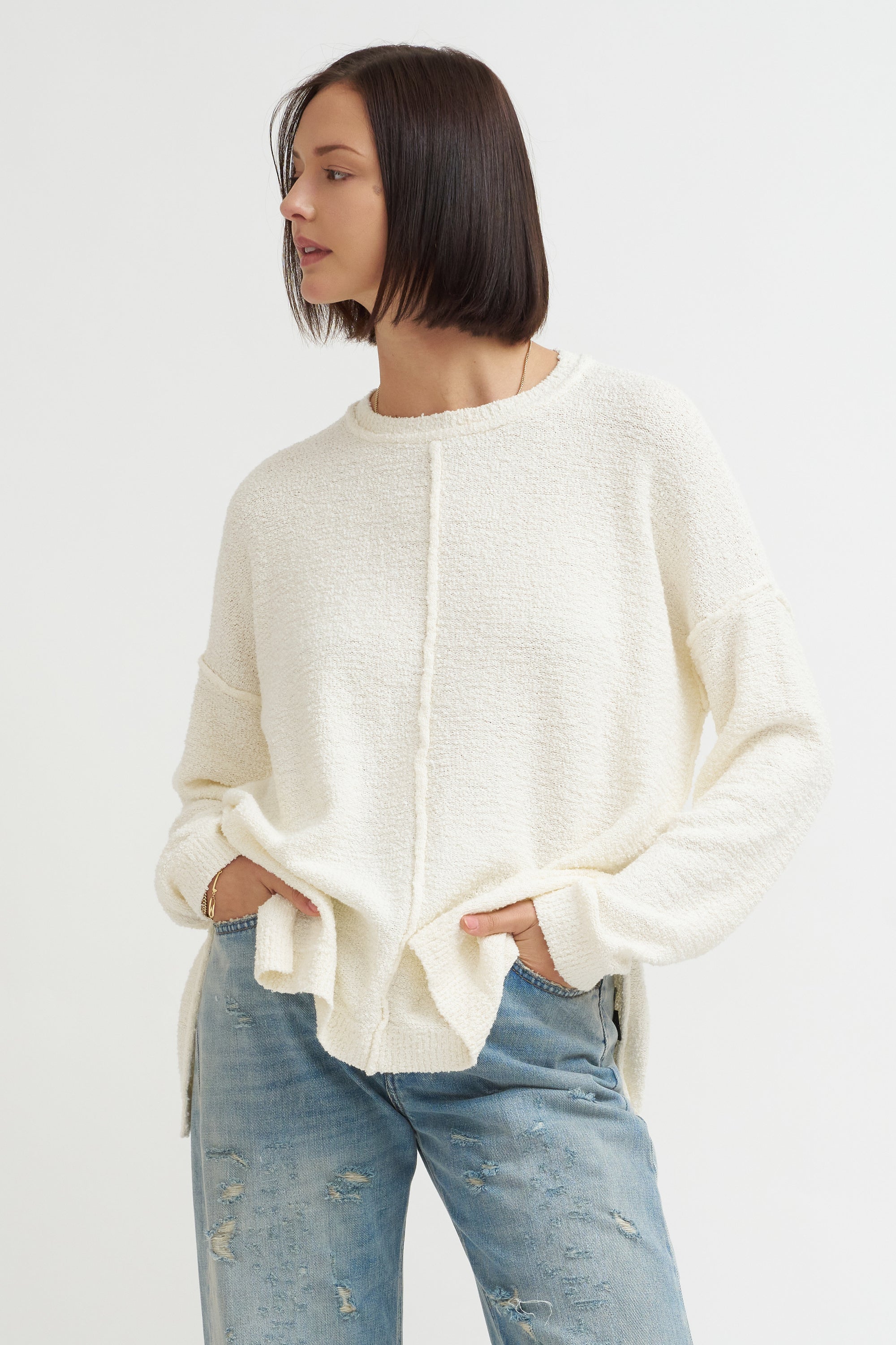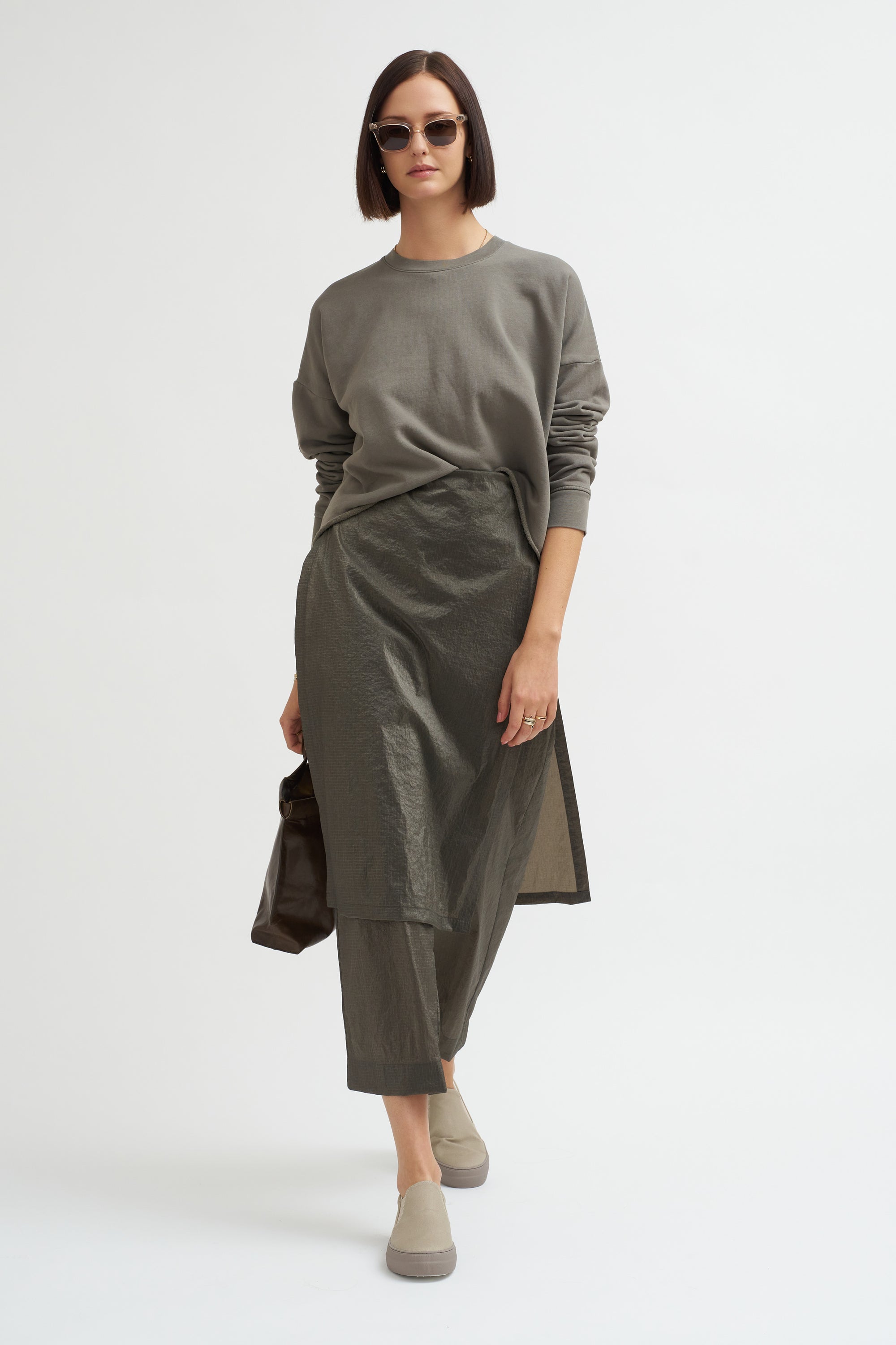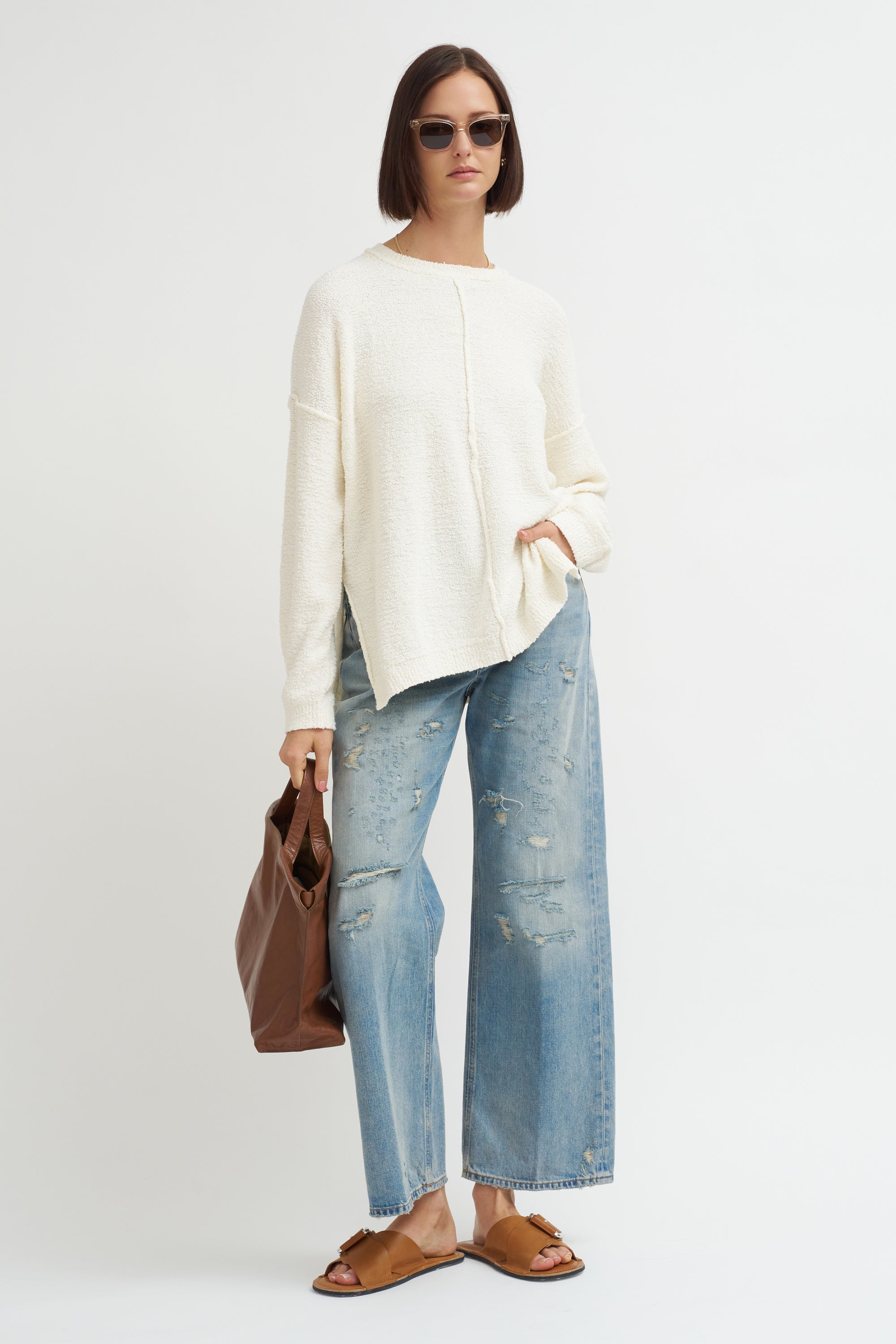 Knitwear designer Lauren Manoogian launched her eponymous label in 2008 as a series of wearable experiments using repurposed materials and leather. Manoogian employs a hands on process, knitting each idea in her Brooklyn studio the same way an artist would sketch out their initial drawings. She then collaborates with Peruvian knitters who utilize natural materials grown and milled in Peru to help turn her ideas into fashion.