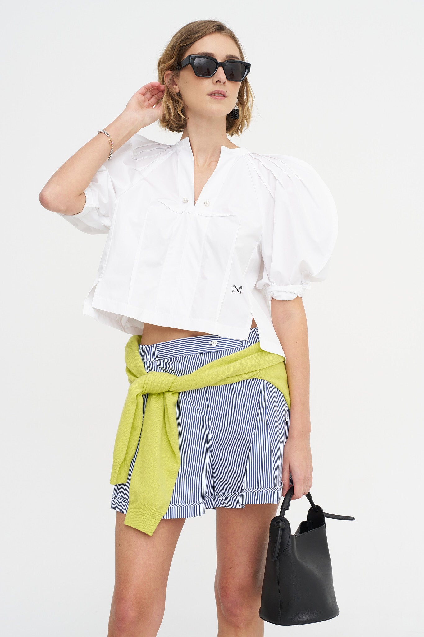 Melodia Print Cropped Shirt, Bone
