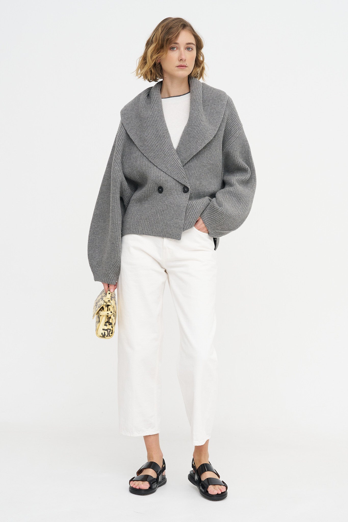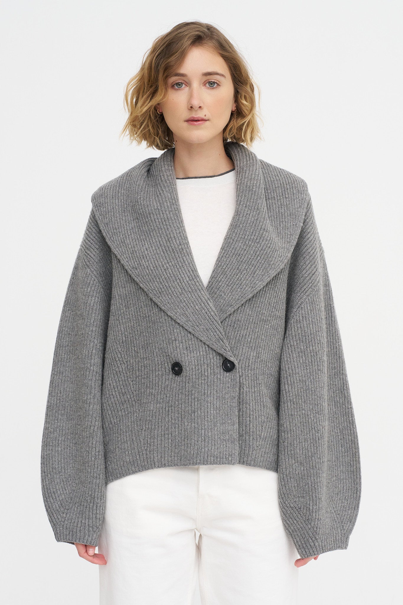 Shawl-lapel Cardigan, Mid-Grey
