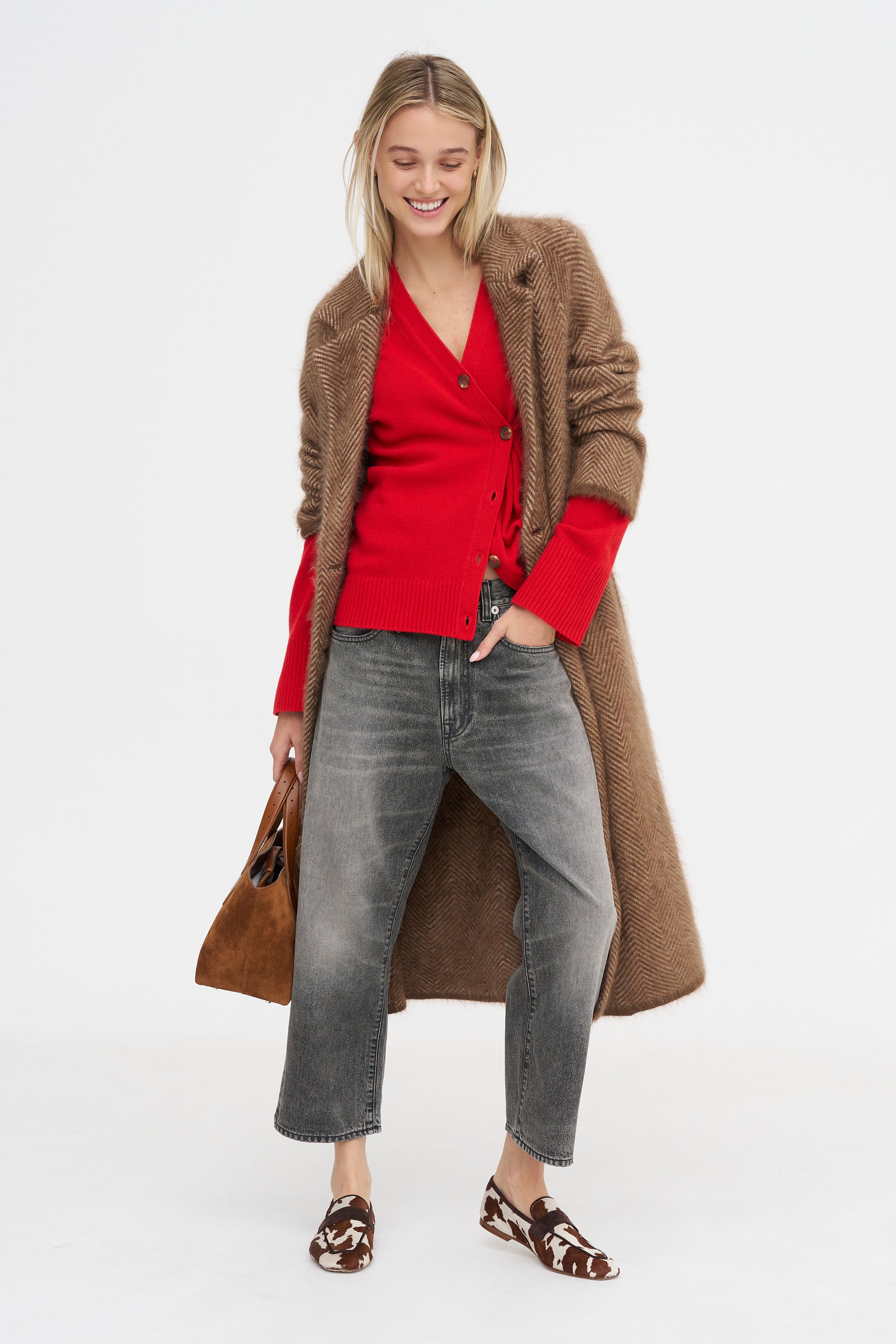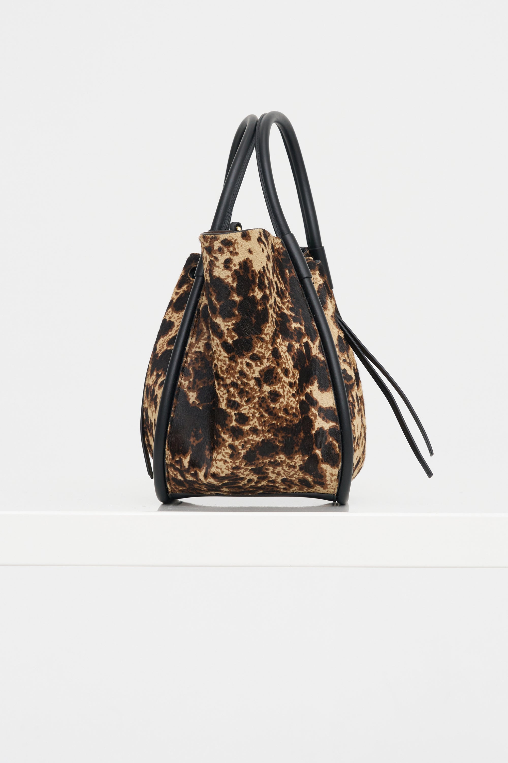 Small Ruched Tote - Printed Haircalf, Dark Brown Multi