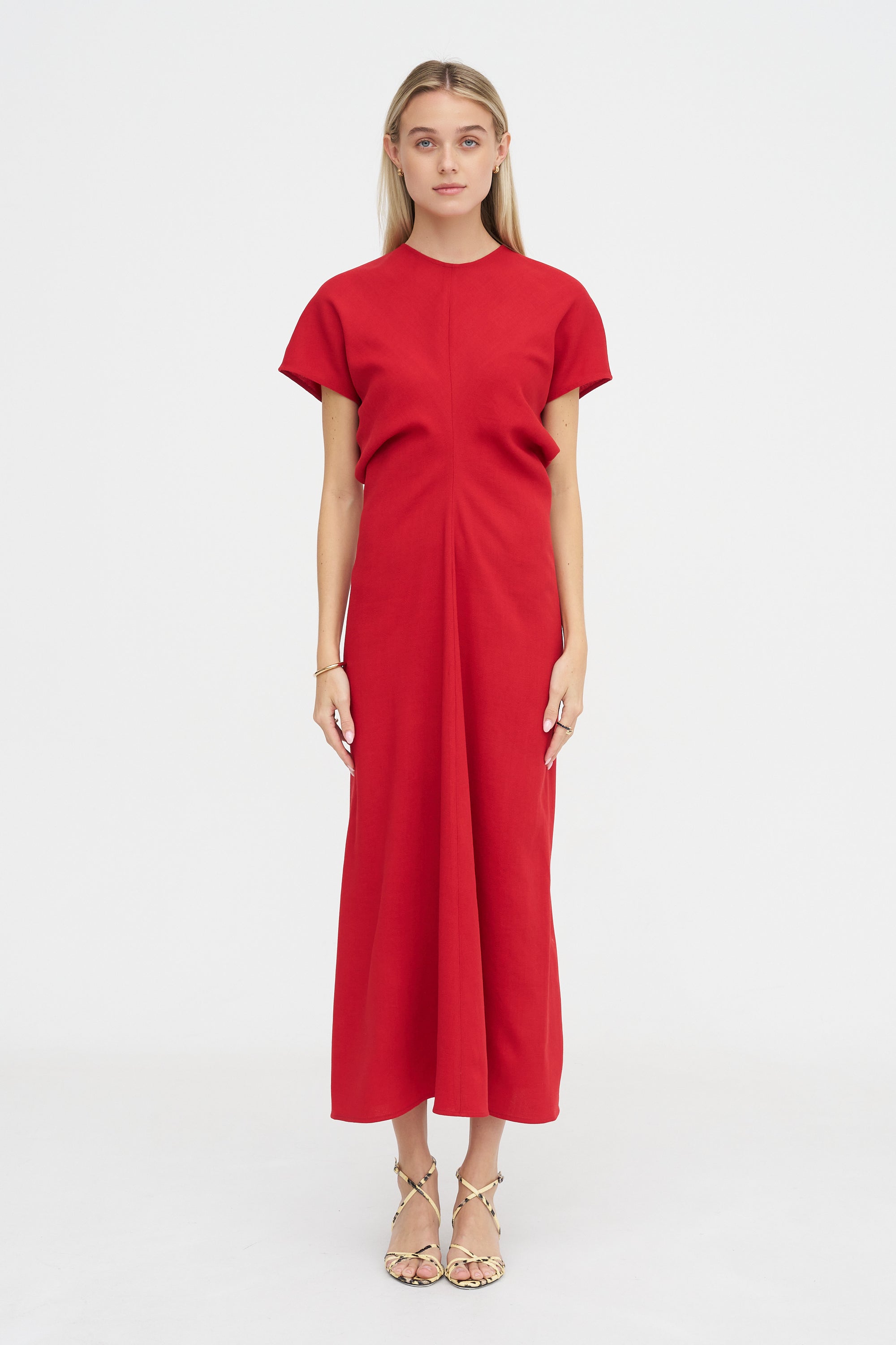 Slouch Waist Wool Dress, Poppy