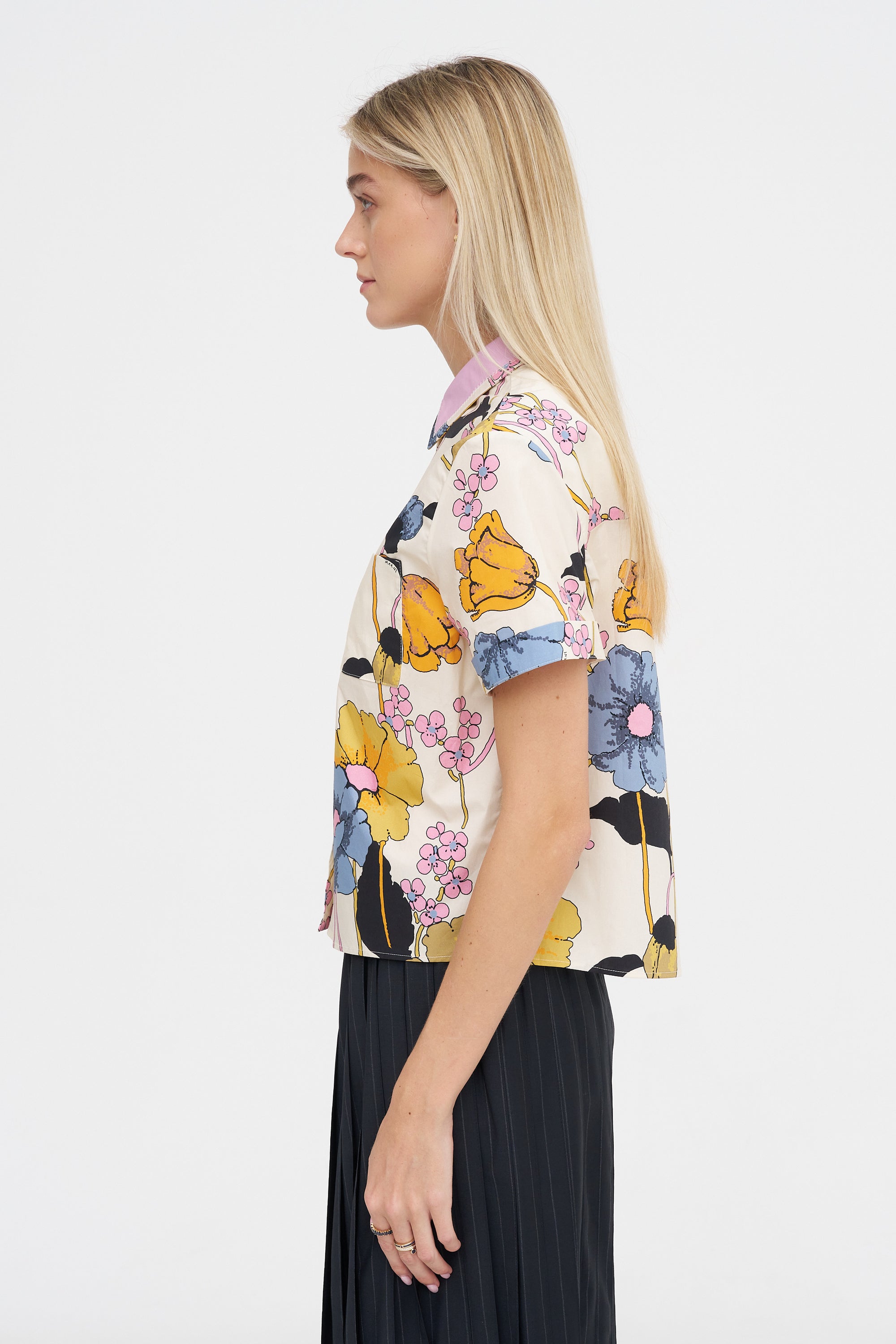 MARNI Melodia Print Cropped Shirt, Bone
