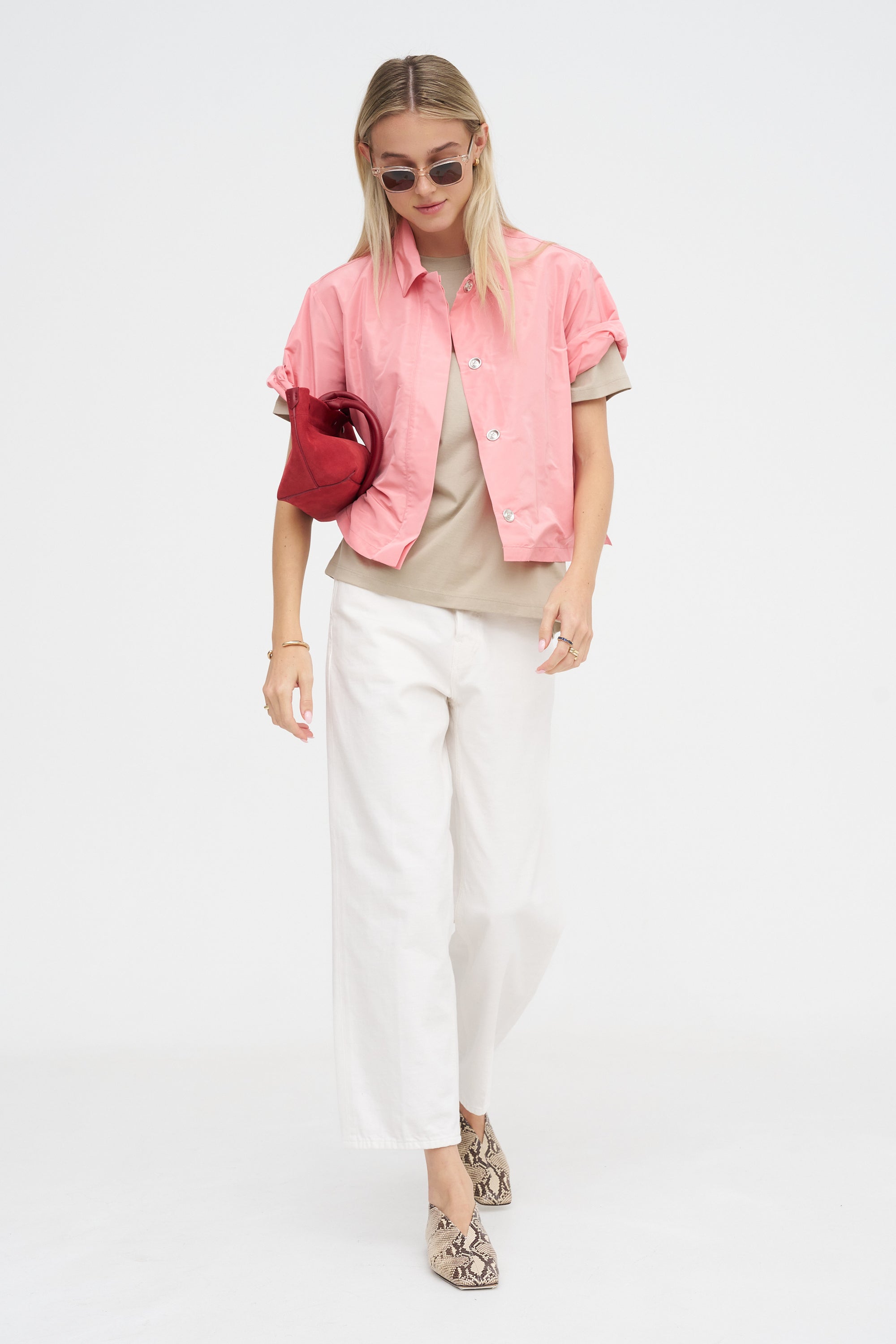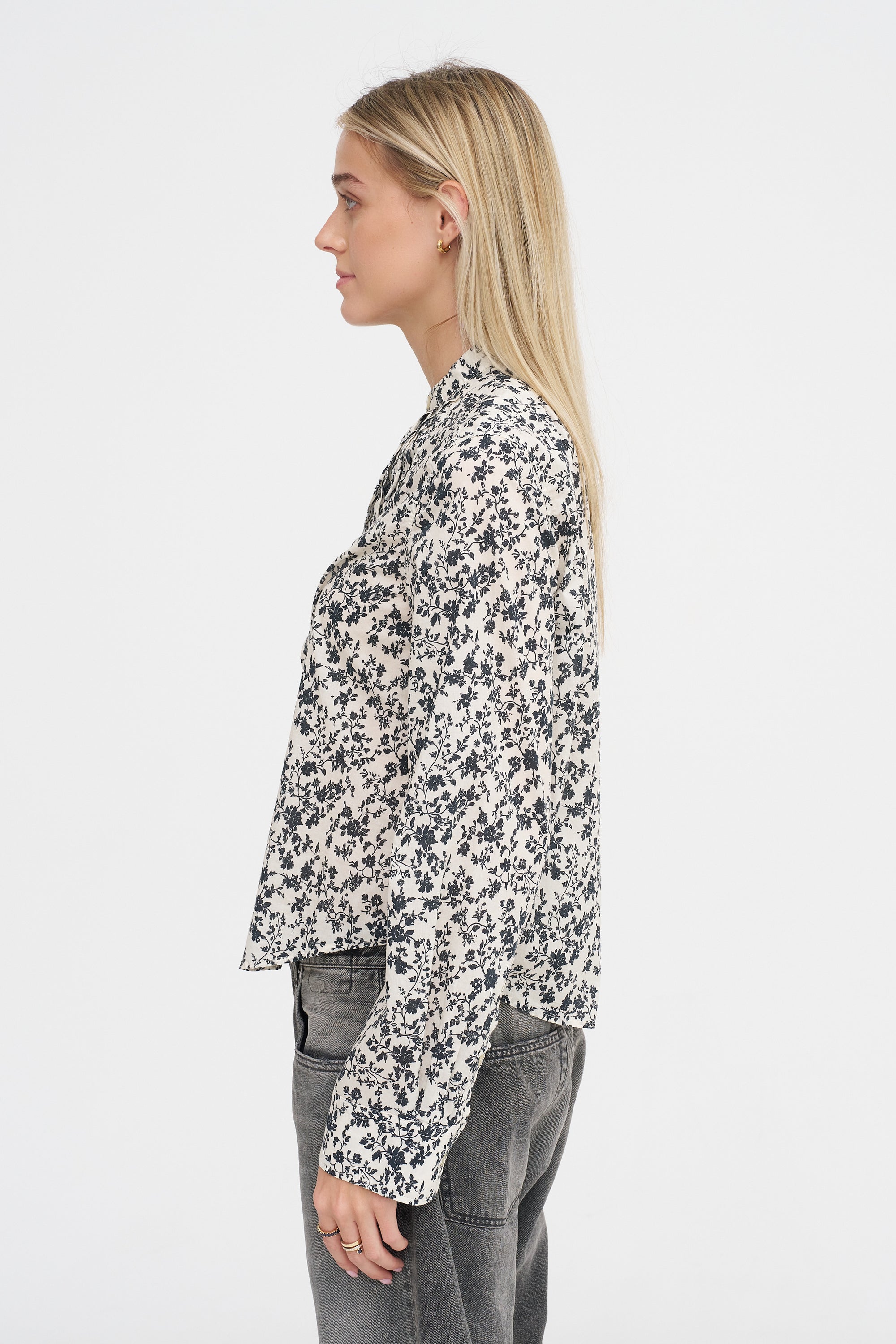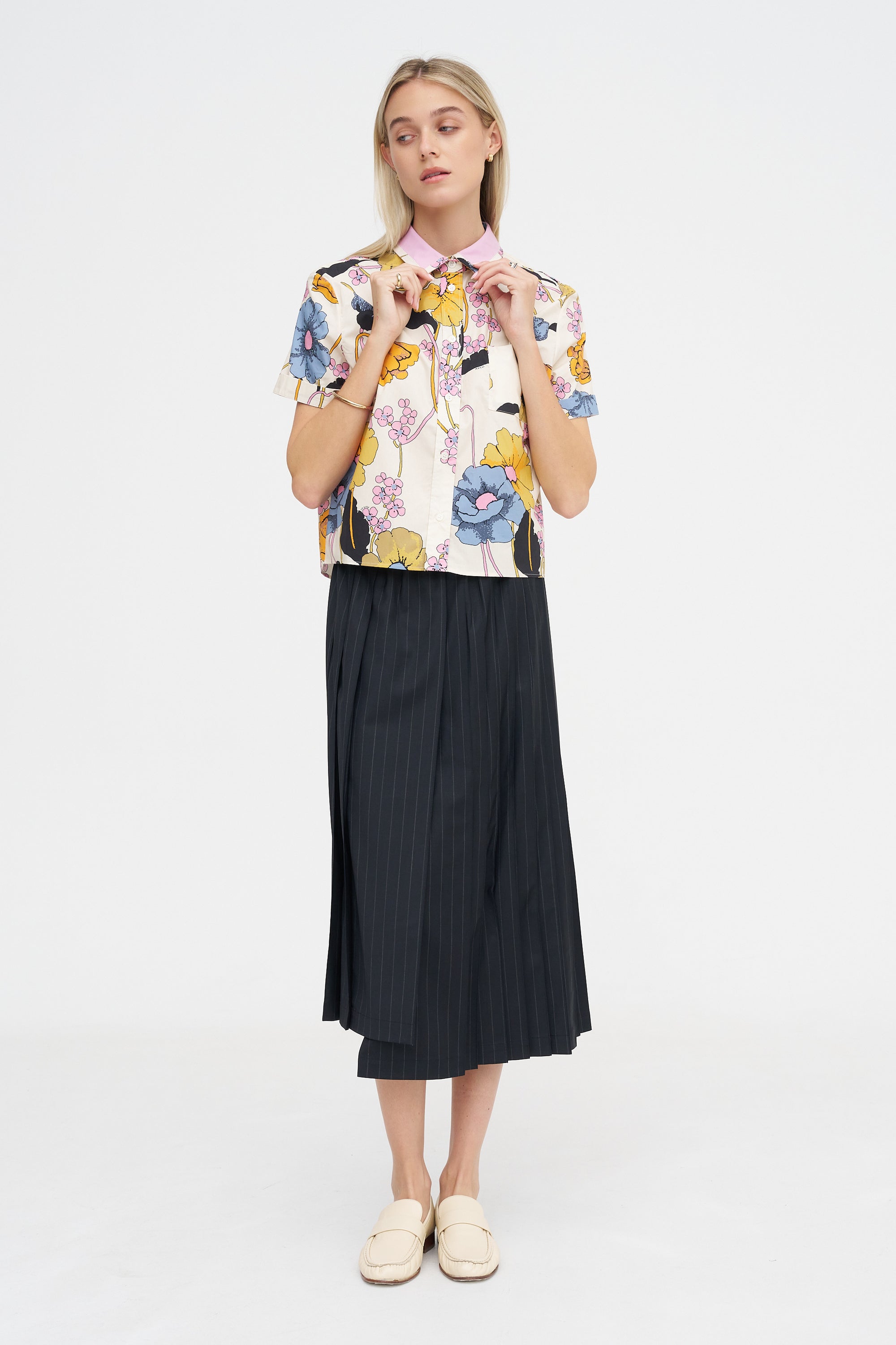 Melodia Print Cropped Shirt, Bone