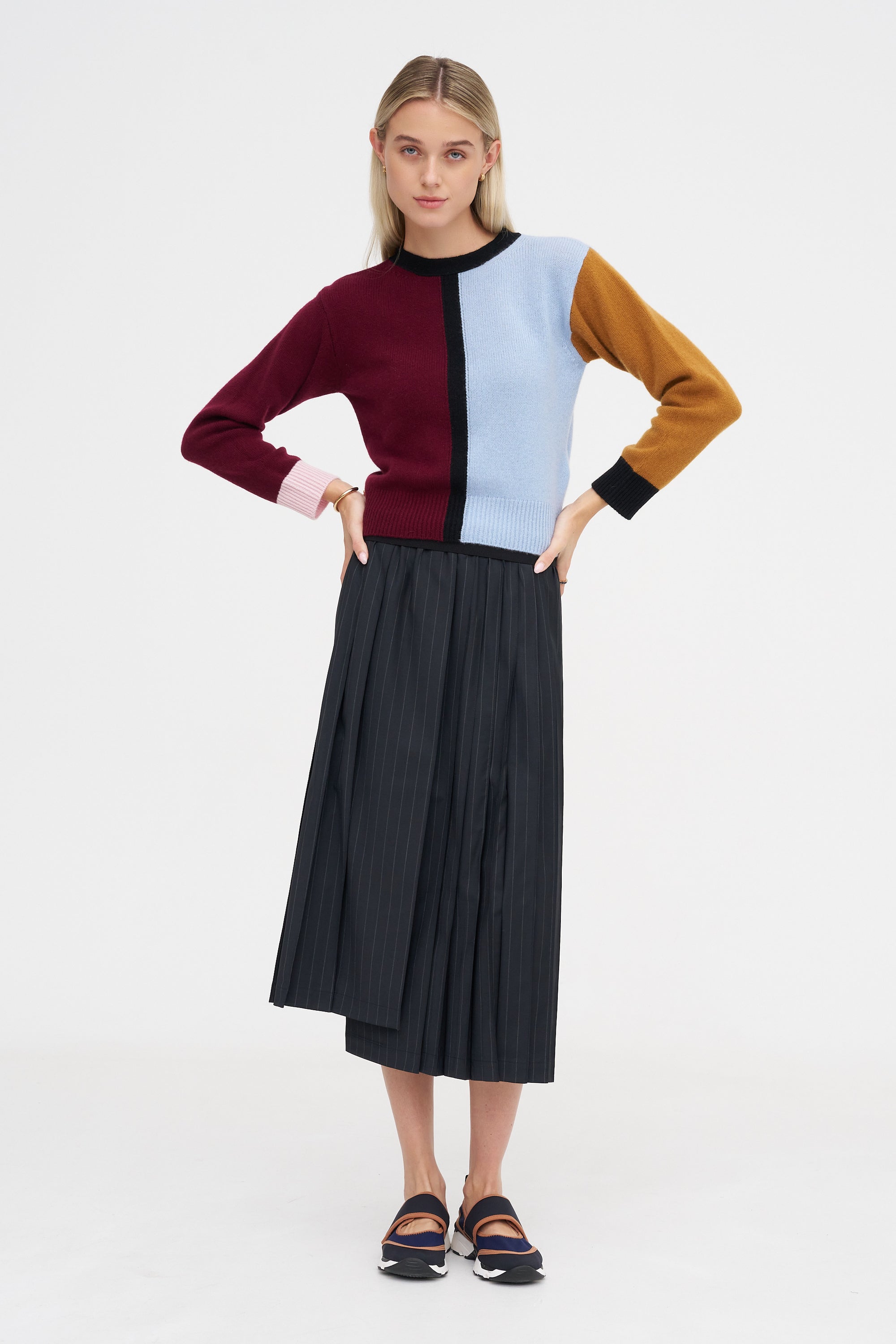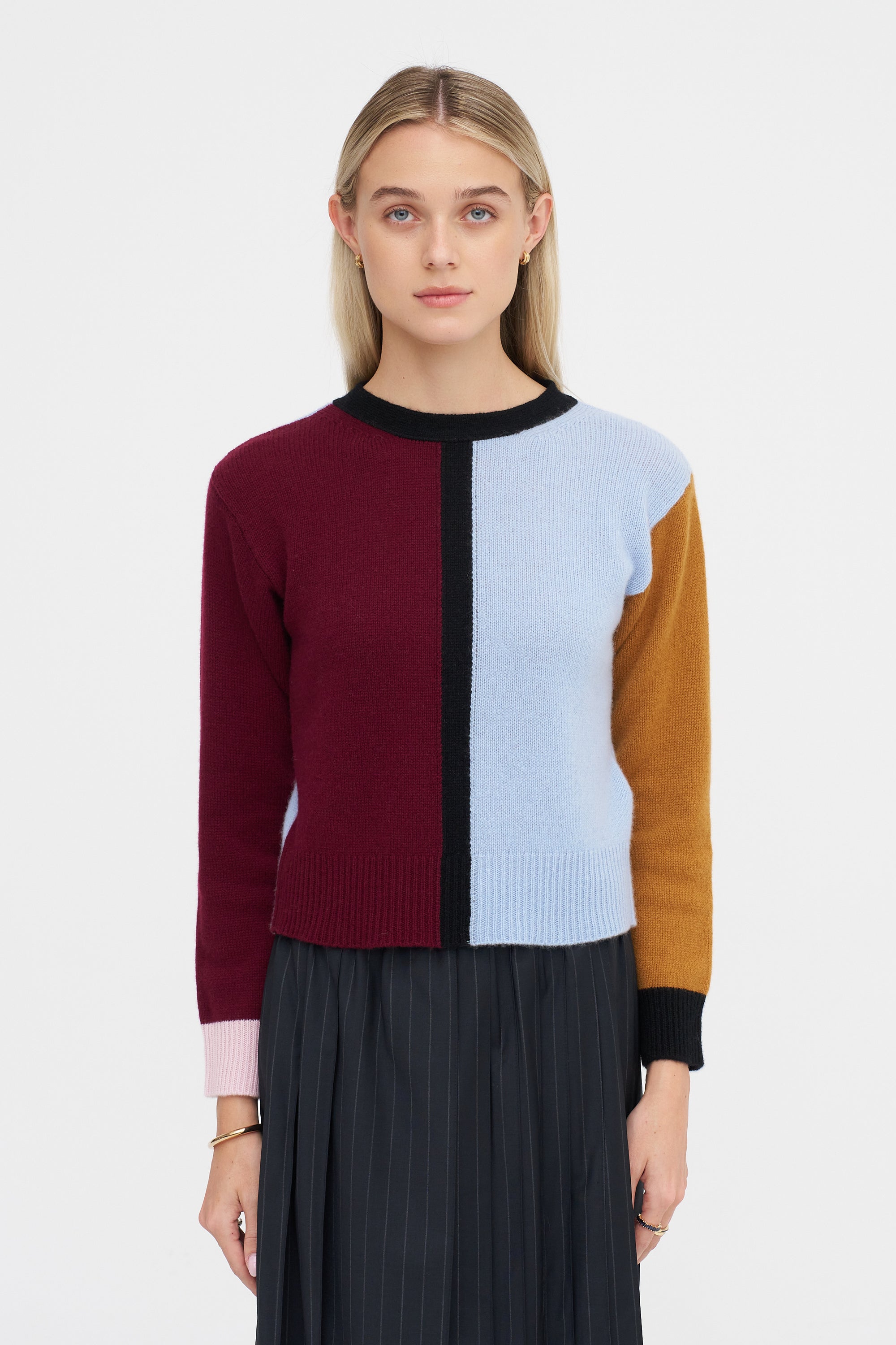 Cashmere Color-Block Sweater, Light Blue