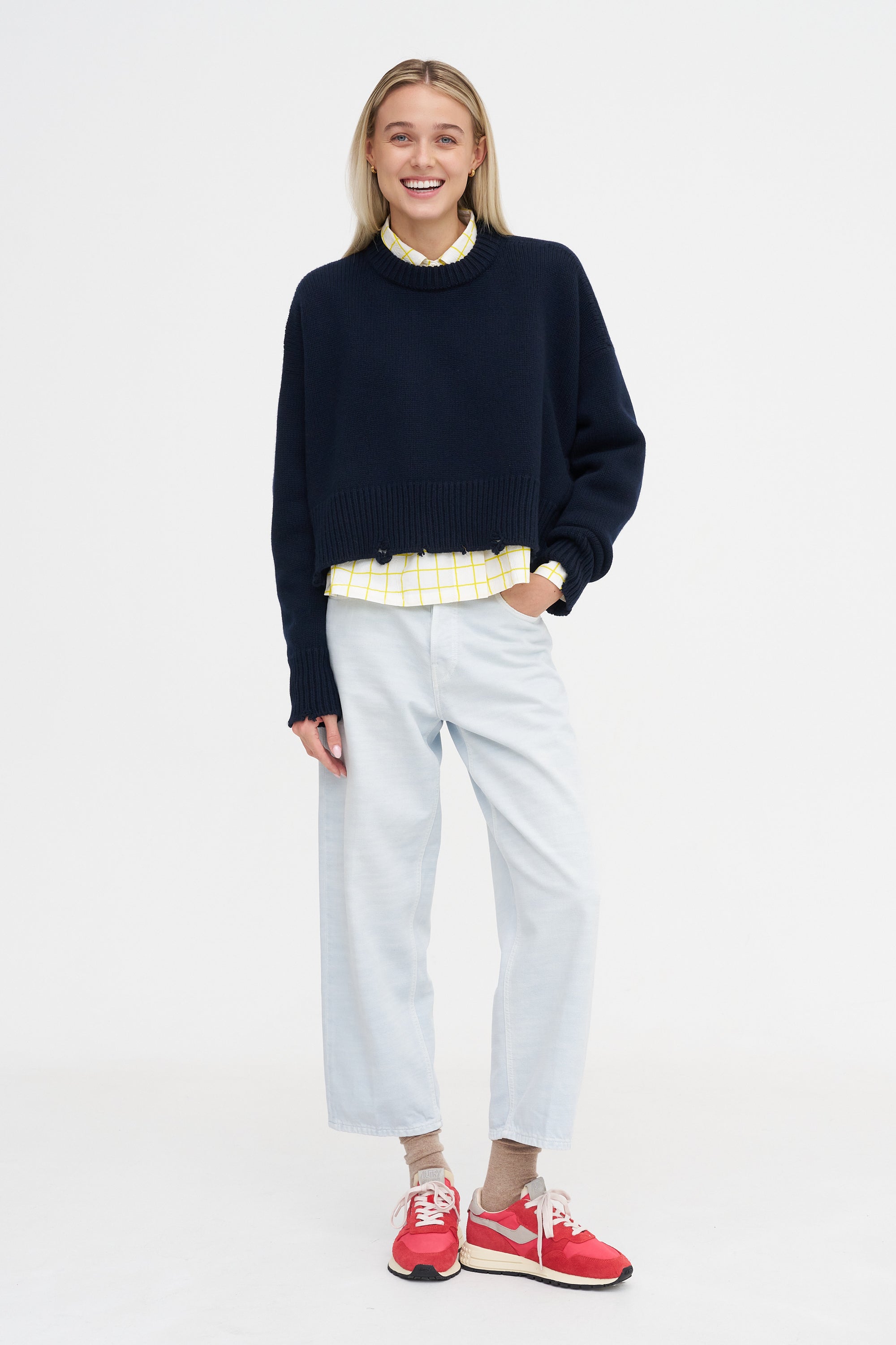 R13 Cropped Work Shirt, Light Blue Plaid