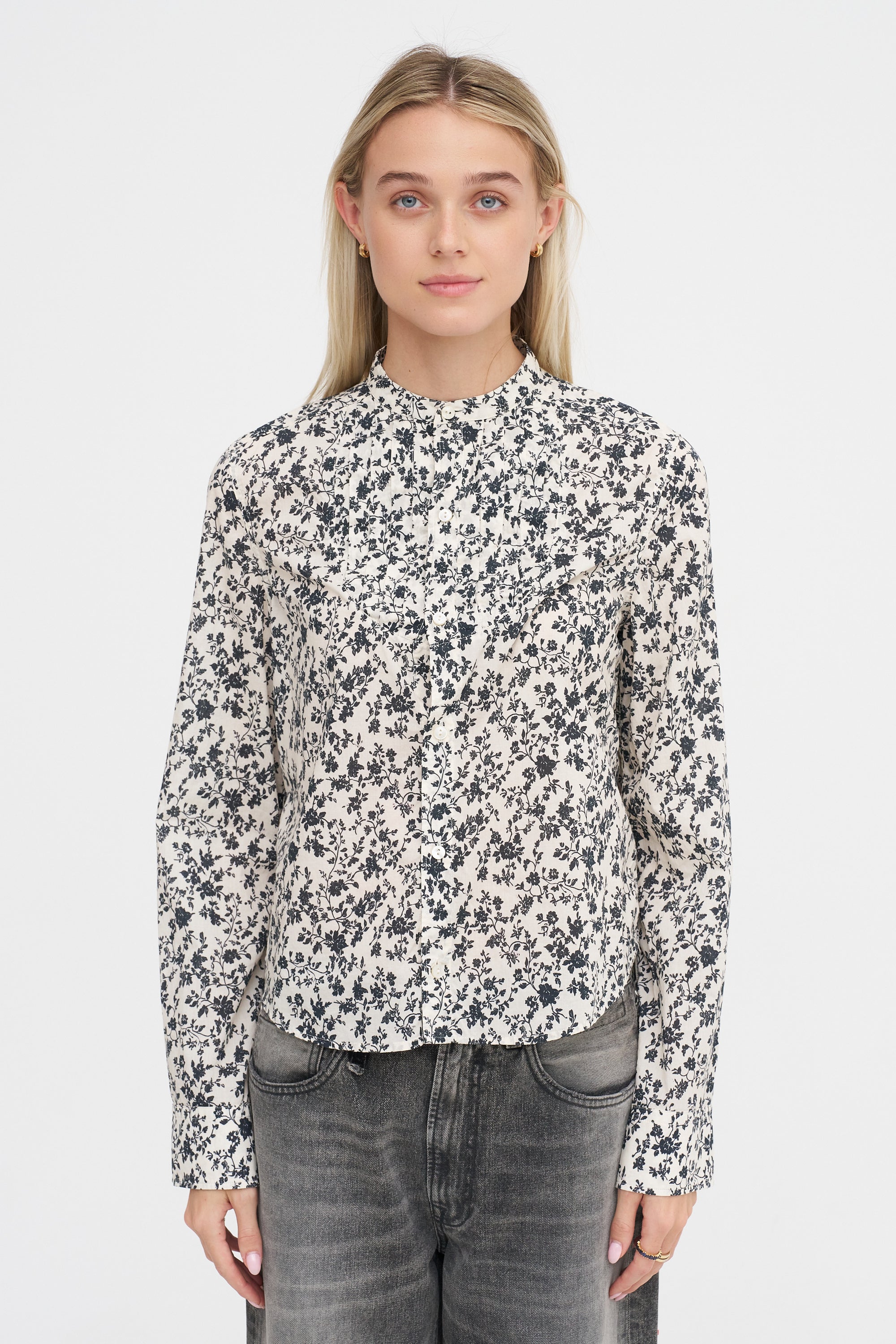 Pleated Tuxedo Front Shirt, Black Floral