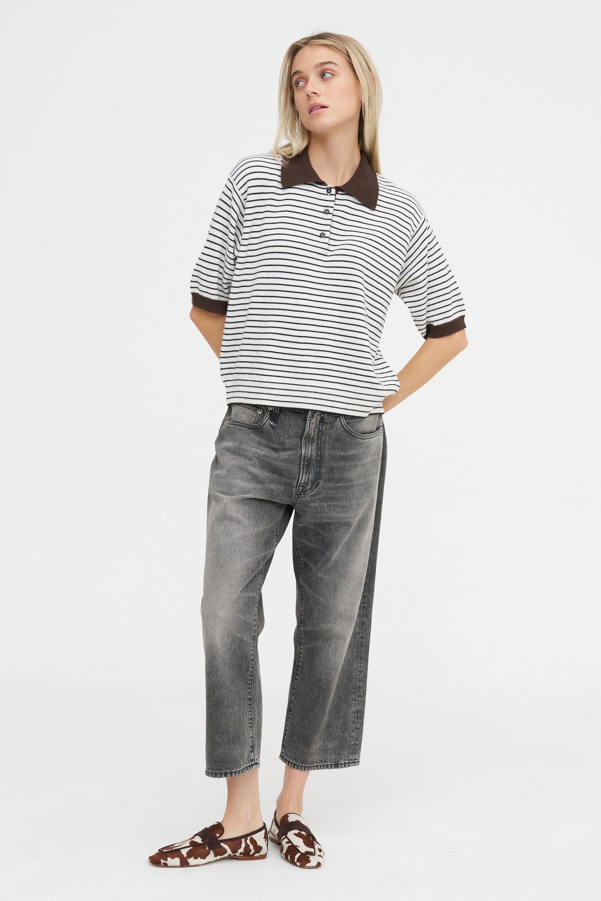 Organic Cotton Striped Polo, Grey & Beige
