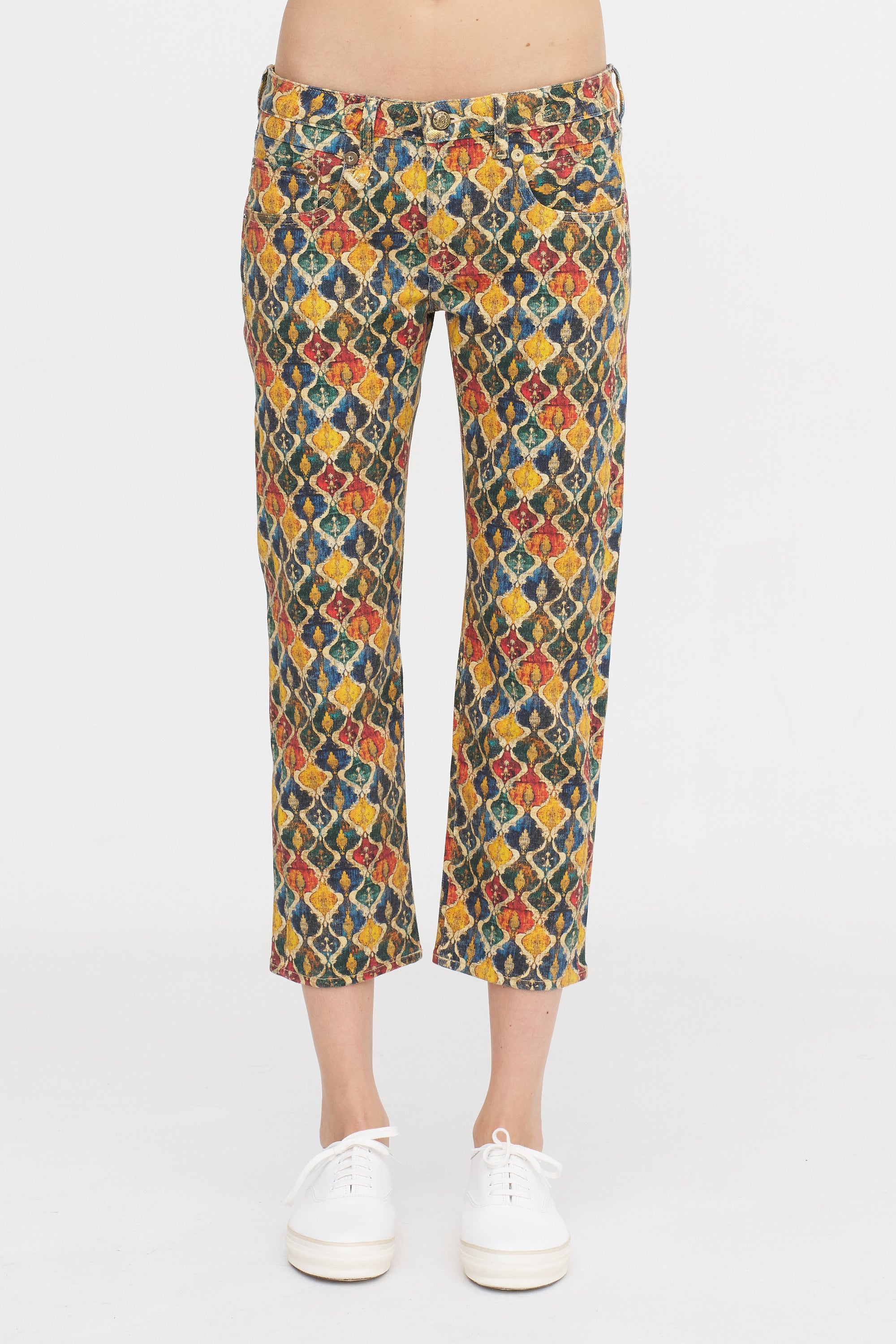R13 Boy Straight, Gold Orange Ikat