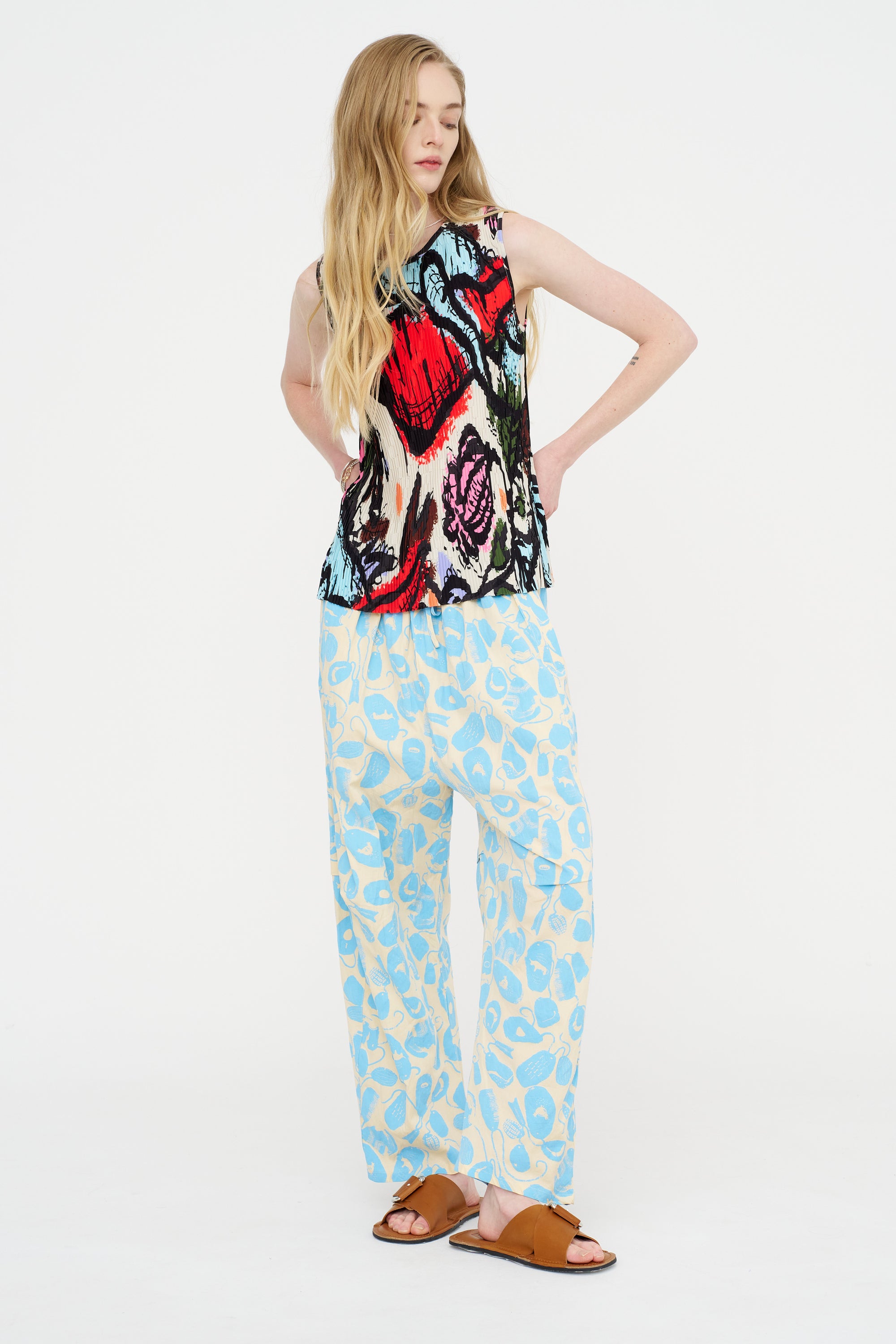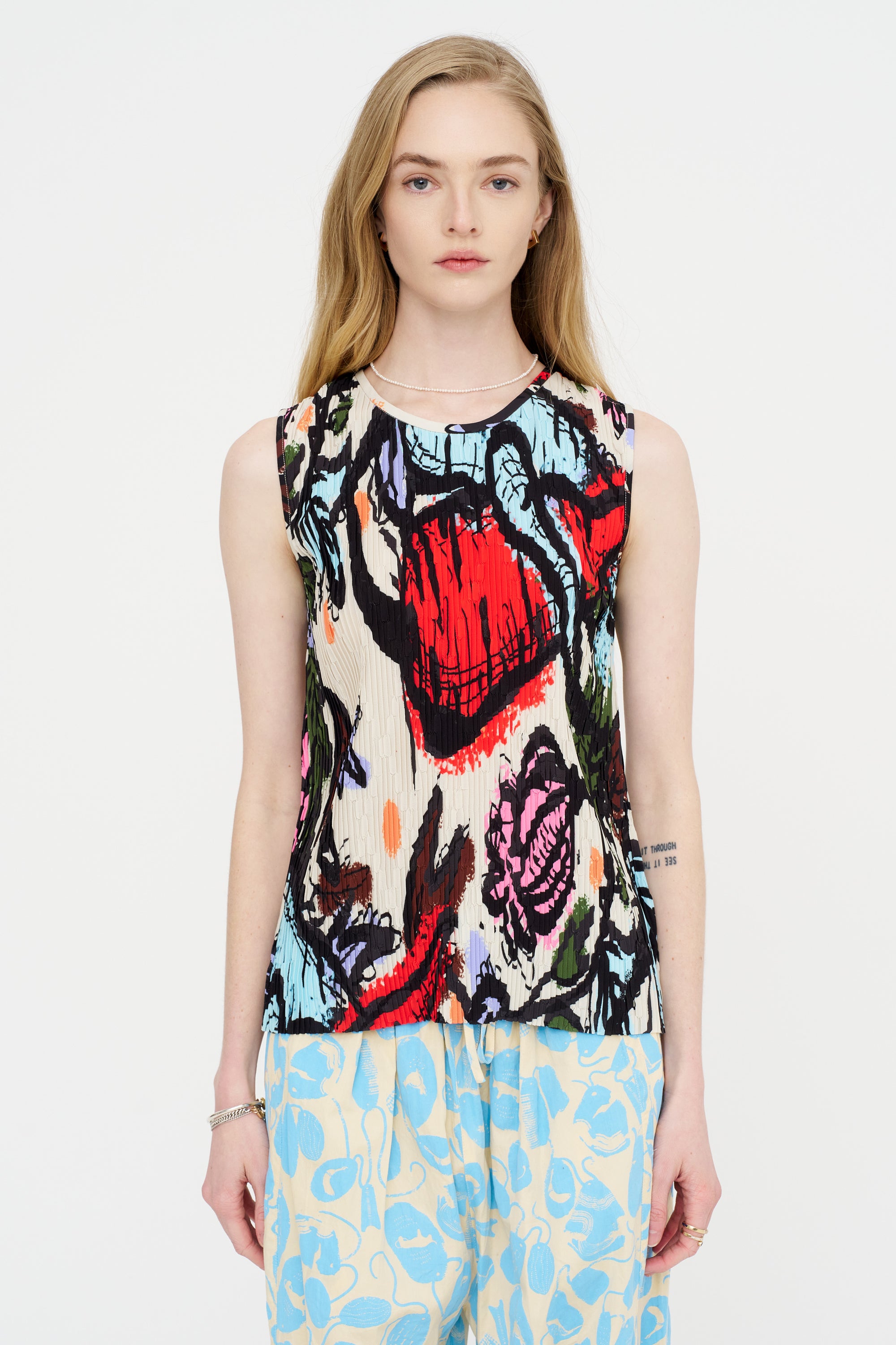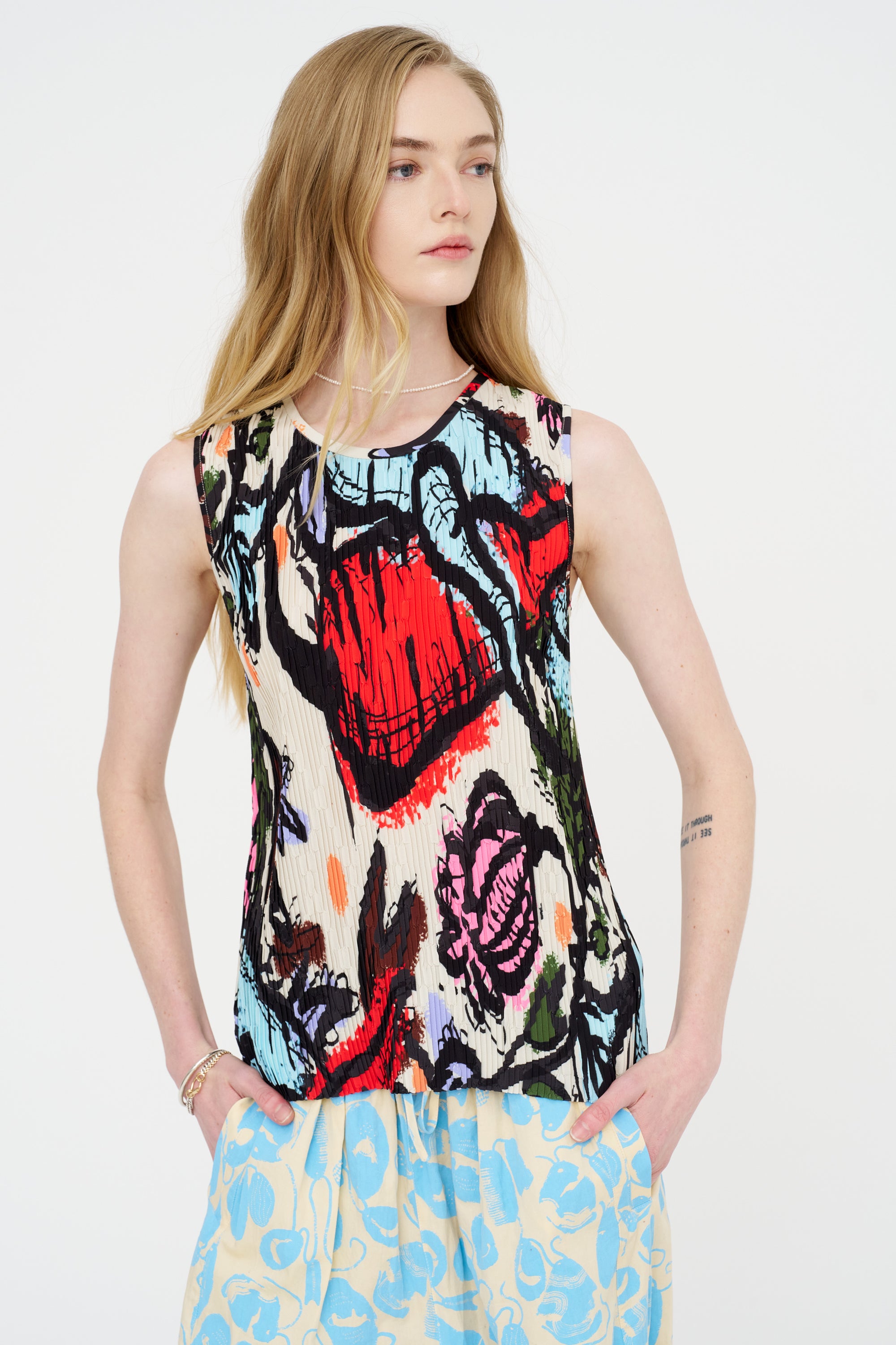 Sleeveless Plissé Top, Carrots