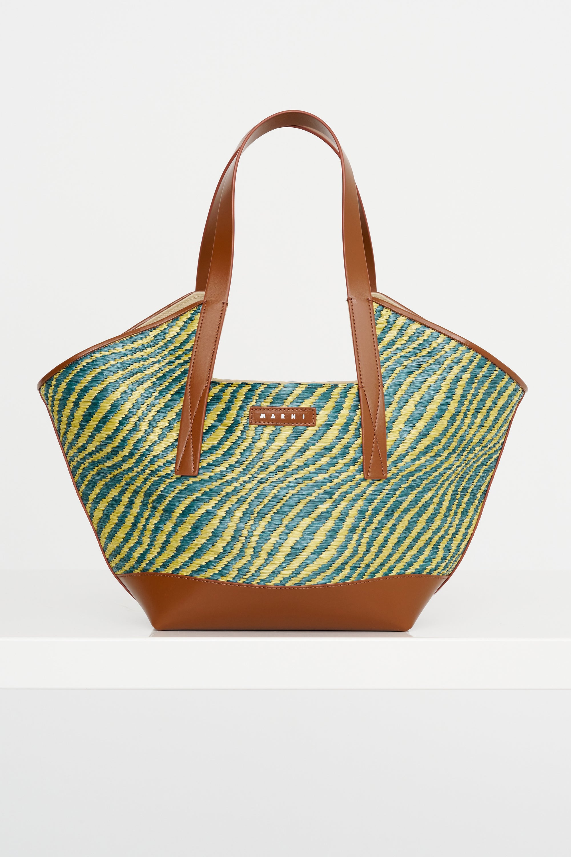 MARNI Raffia -Effect Waves Small Tote, Gardengreen