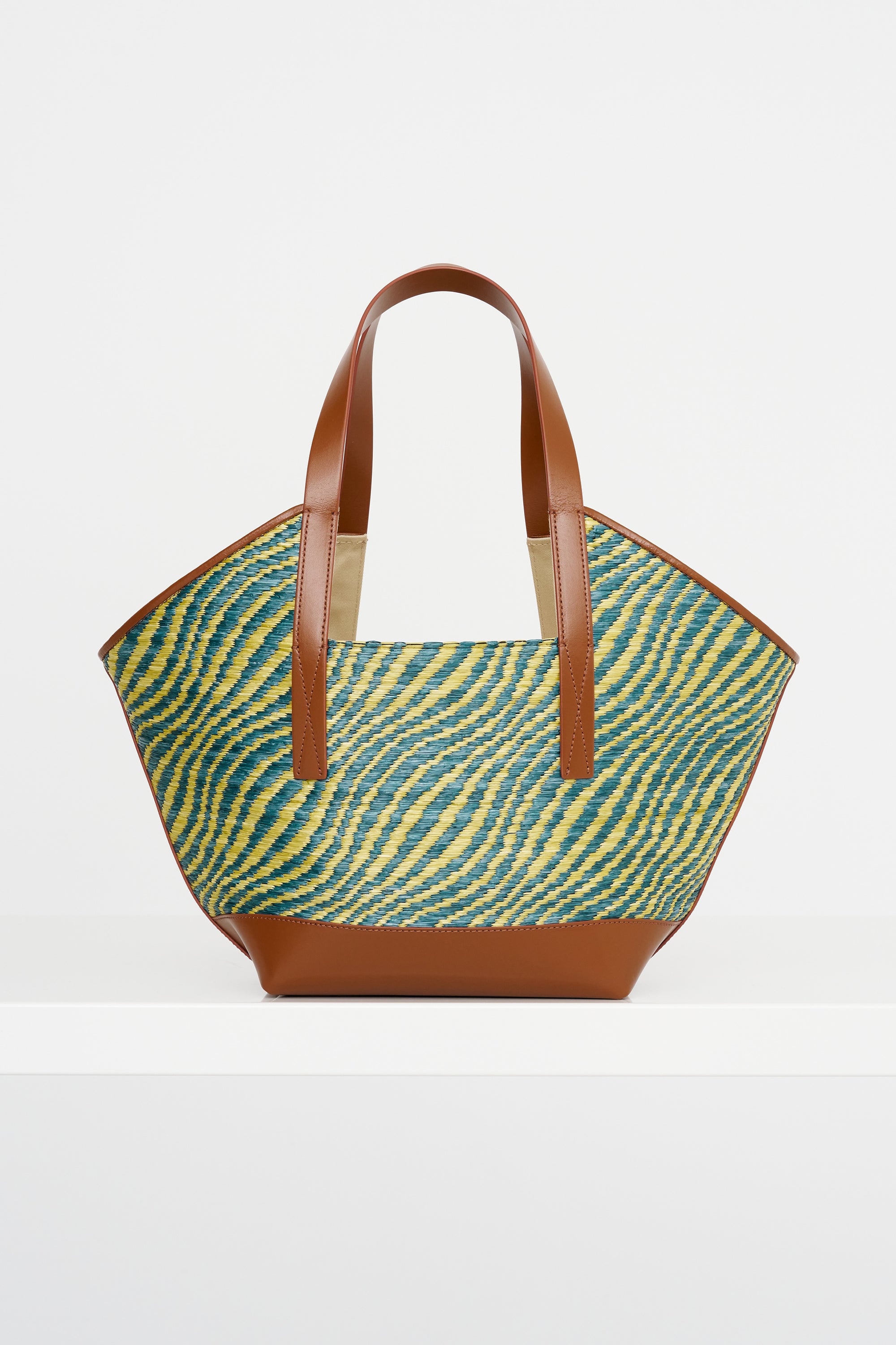 Raffia -Effect Waves Small Tote, Gardengreen