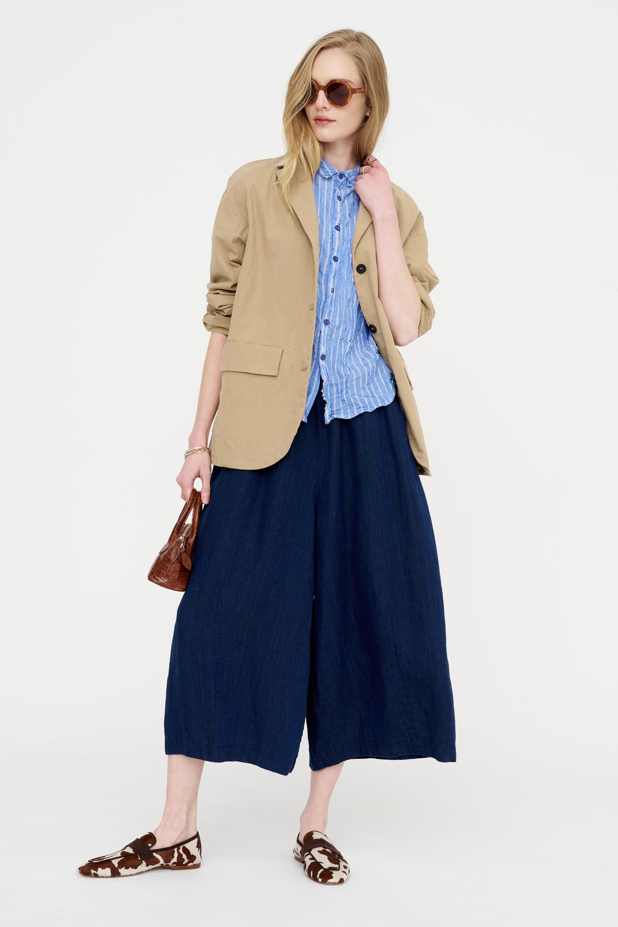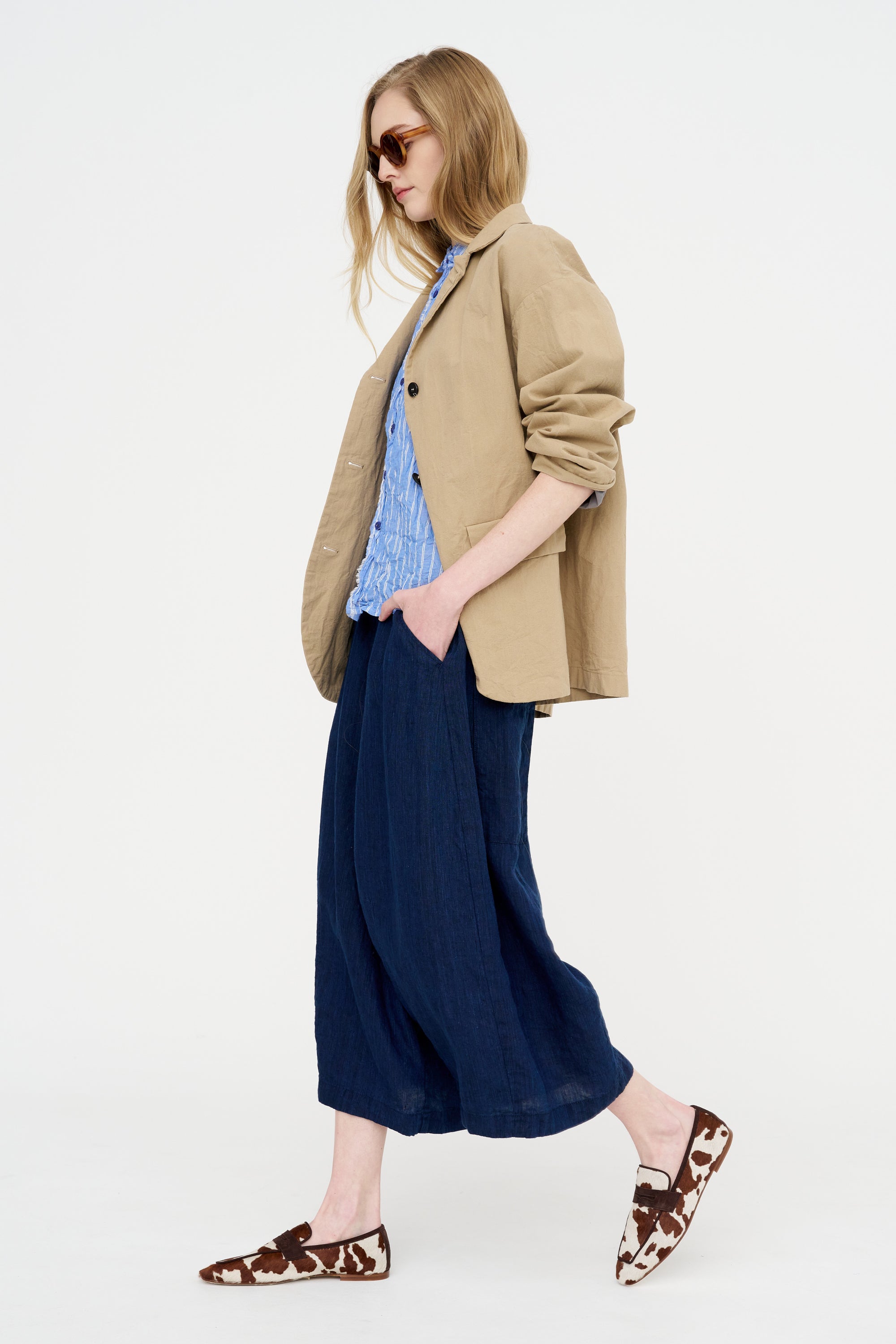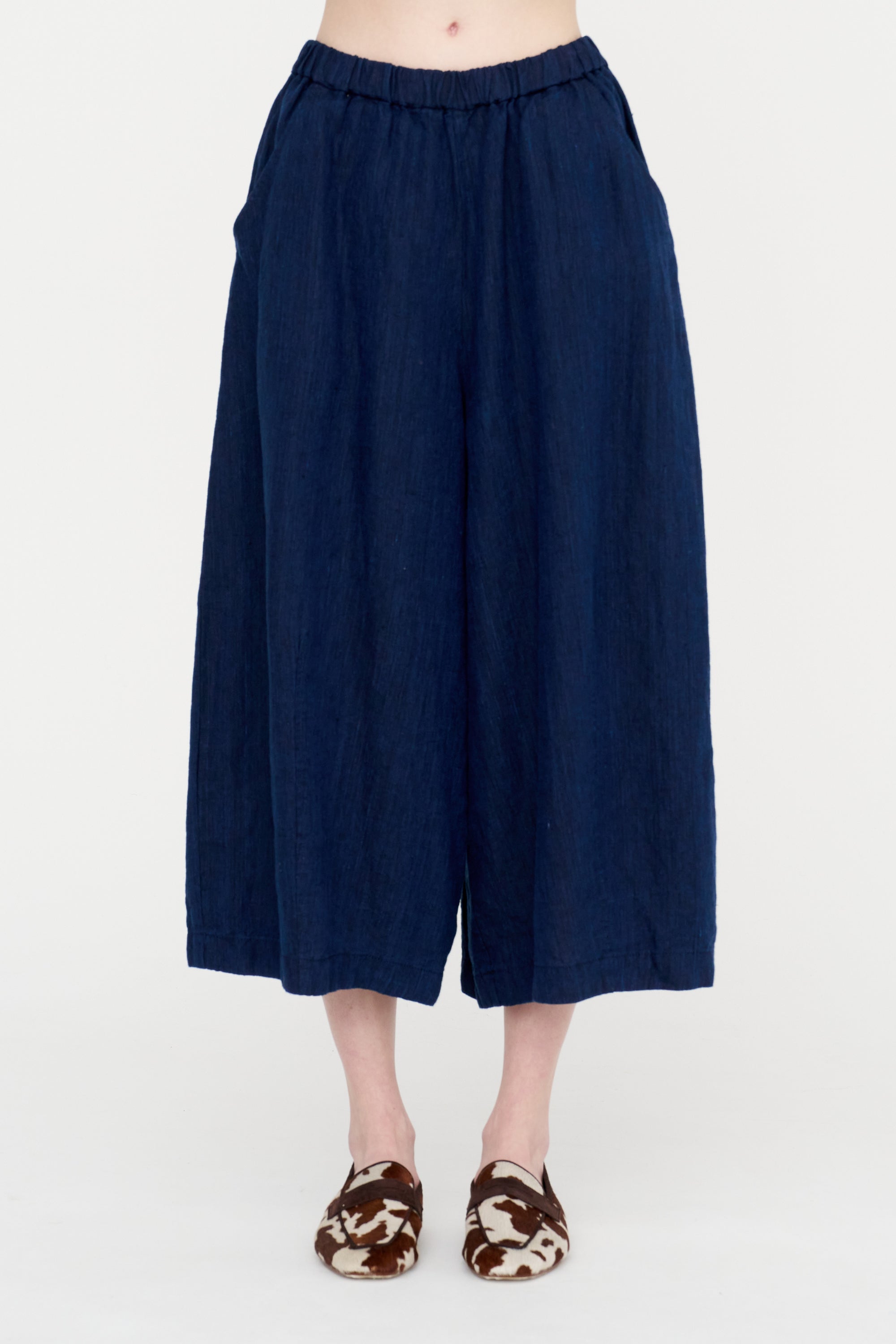 PAS DE CALAIS Linen Indigo Chambray Pants, Navy