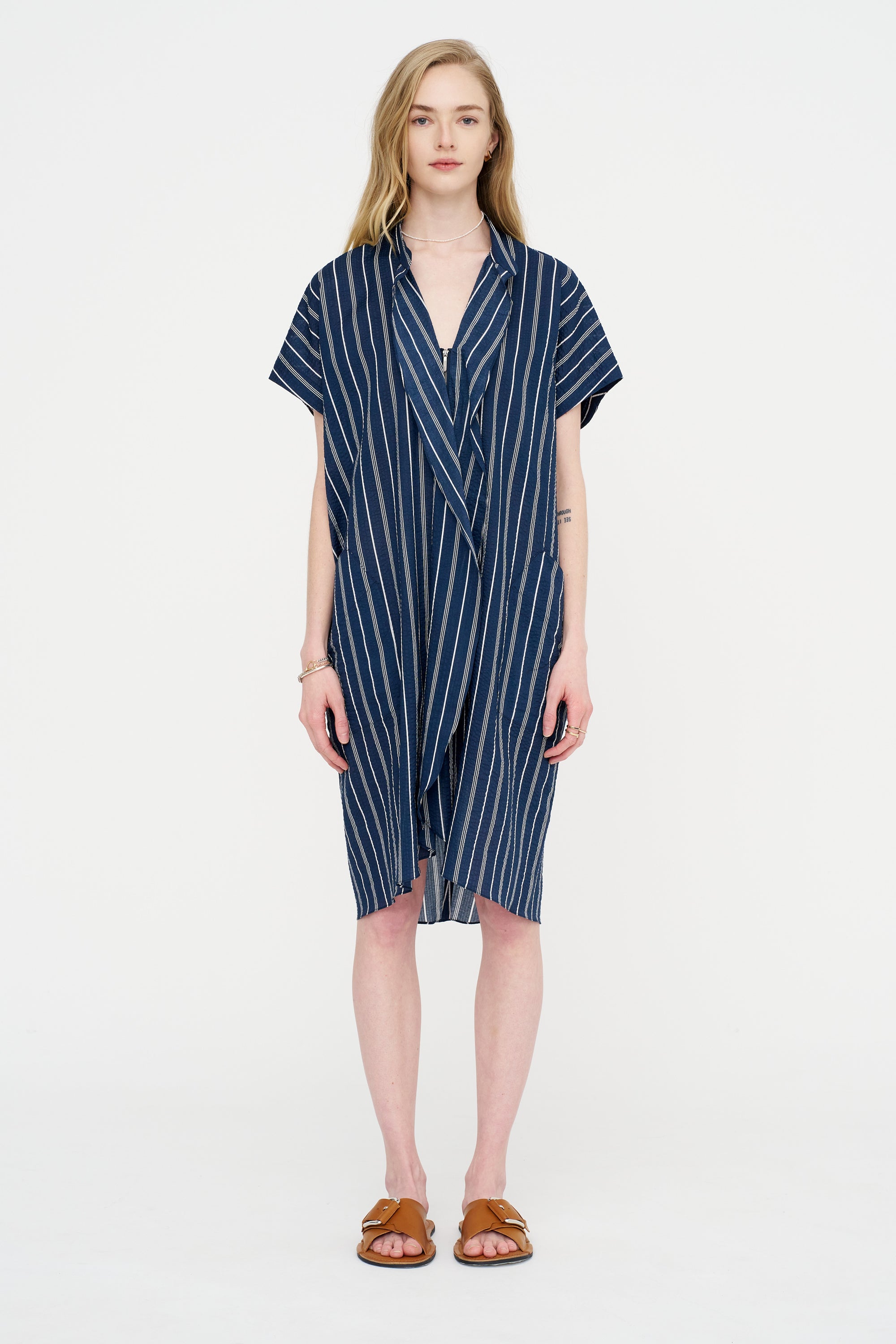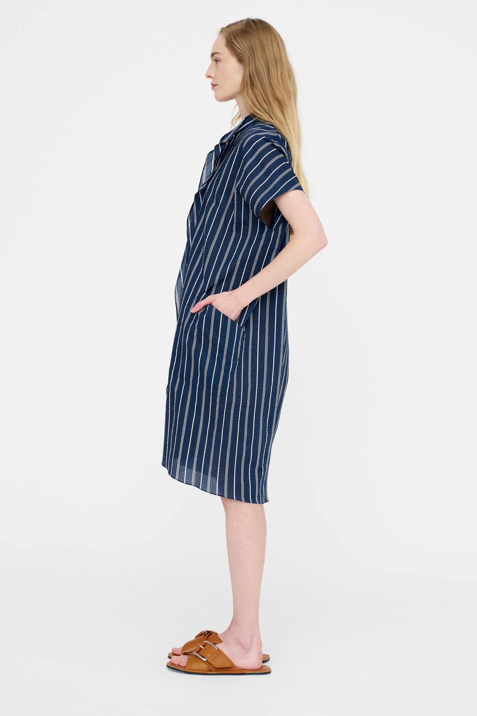 Blue Shirring Stripe Dress, Navy