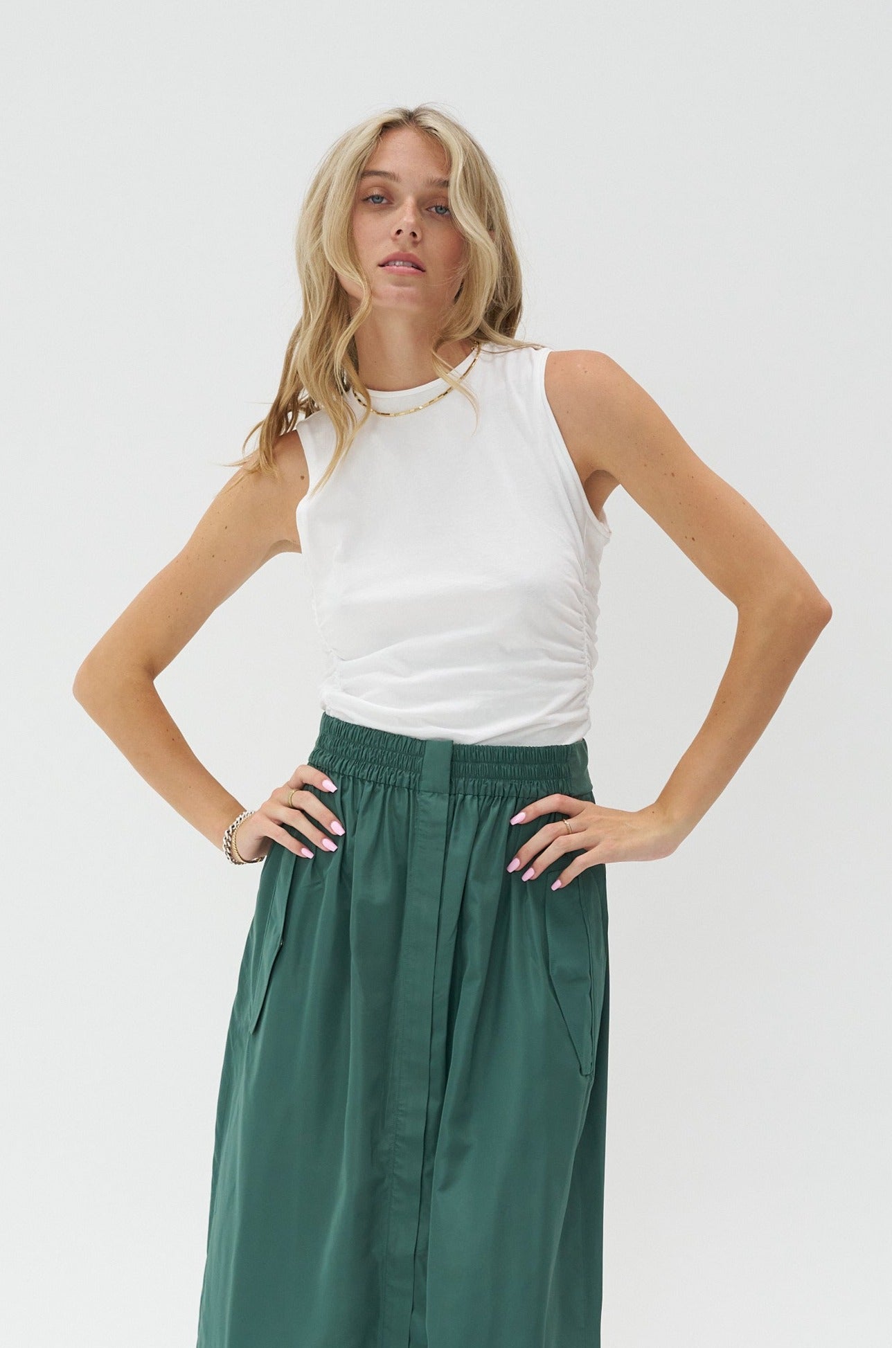 TIBI - T-Shirting Shirred Crewneck, White